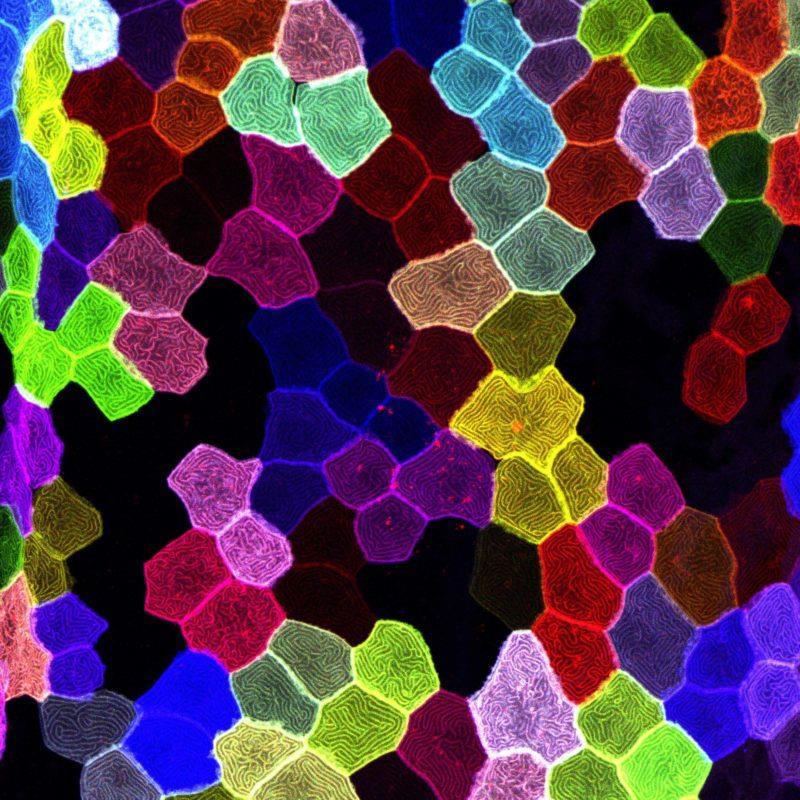 Эпителиальные клетки личинки рыбки Данио из пальмовой кожи.