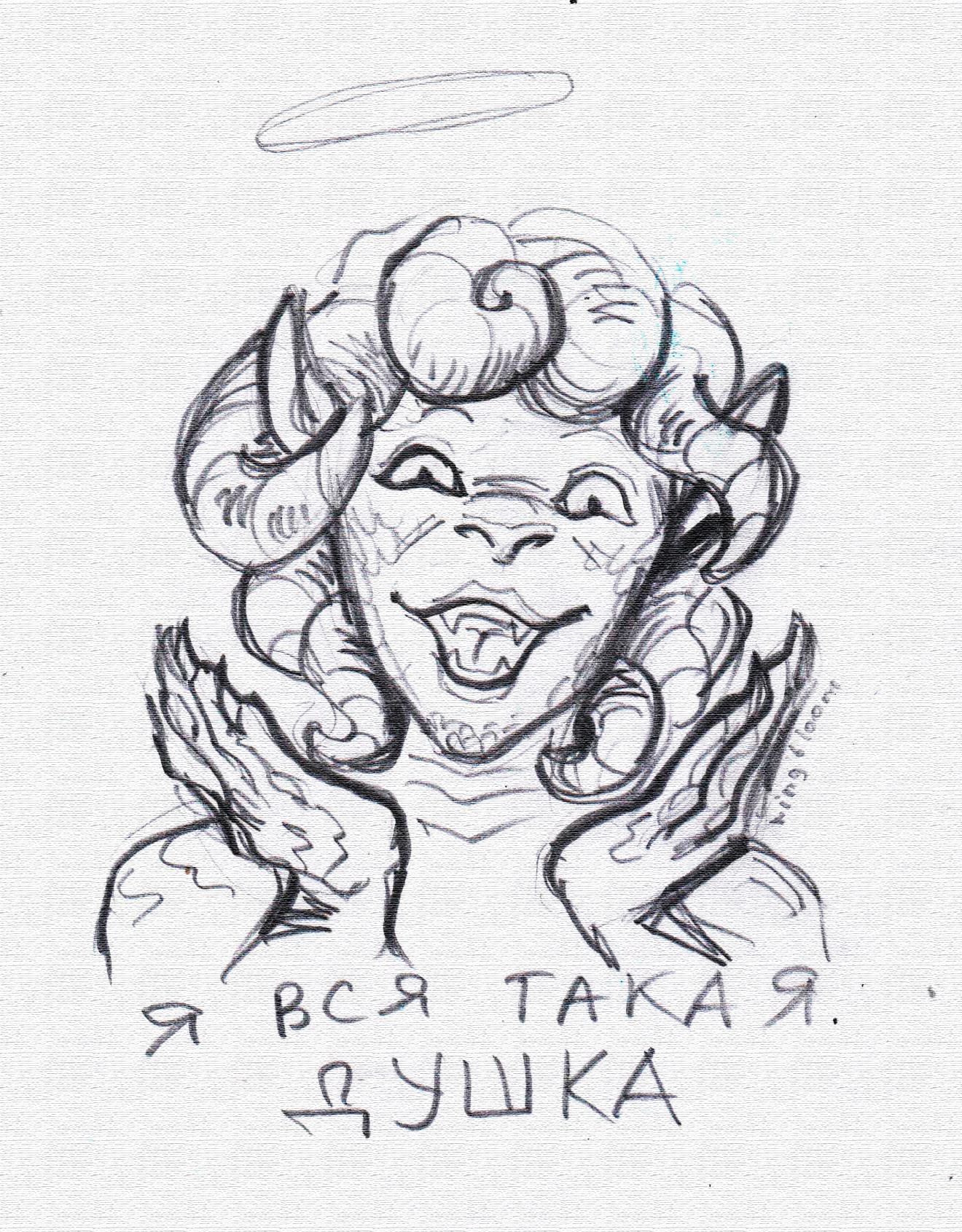 Кроме них у меня еще Агат с Кристинкой наскетчились, вот они напрямую относятся к упомянутой повести, действие которой происходит уже после апокалипсиса. Агат - та еще зараза, но особой роли в самом апокалипсисе не сыграла (тем более что, скорее всего, уже на тот момент была подневольной). Ну а Крис - получеловек, появилась на свет во время апокалипсиса и вообще не в восторге от произошедшего.