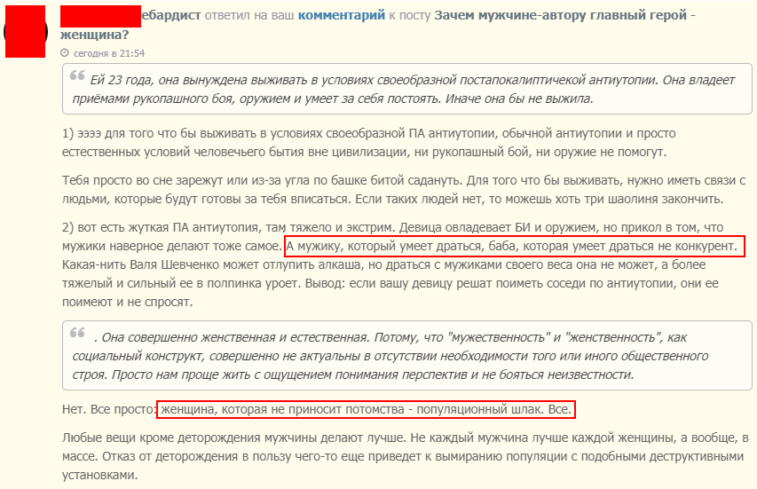 Верно: будучи разными видами, мы подсознательно тянемся с своякам! Это не стадный инстинкт, а совершенно аргументированная позиция! Ведь любая писательница потенциально менее ценна, чем потенциальный писатель! Я даже видел людей, которые призывают читать исключительно мужское творчество на этой платформе. Что это, если не дух единства и братства? Ведь, как мы знаем, сестринство это один "большой клубок змей". Только не ясно, куда делись все самцы из змеиного клубка, в котором может быть лишь одна самка?