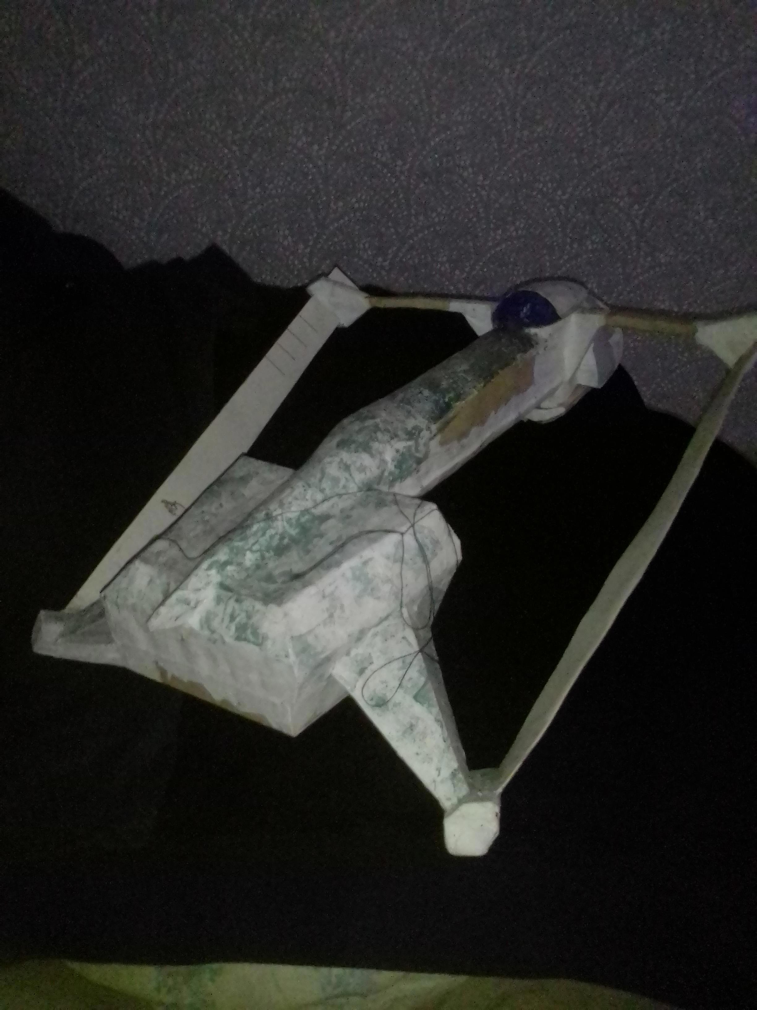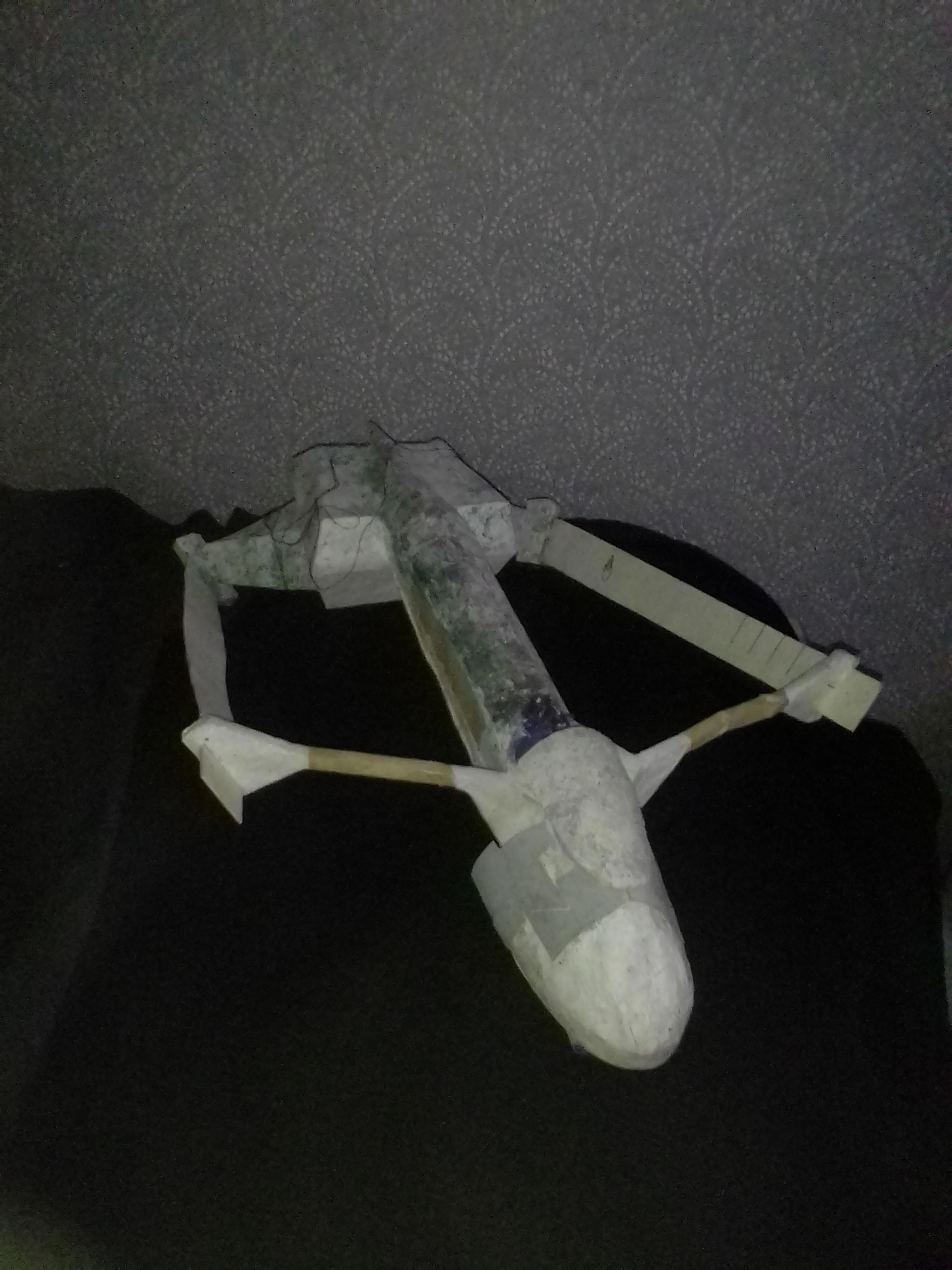 Итак, задача. Есть несколько фото бумажной модели, могу ещё сделать. Требуется нарисовать её в нормальном виде. Иллюстрация должна изображать гибель флота (то есть три-четыре рисунка с разного ракурса с повреждениями и без). Следует также учесть, что длина корабля полтора километра.
