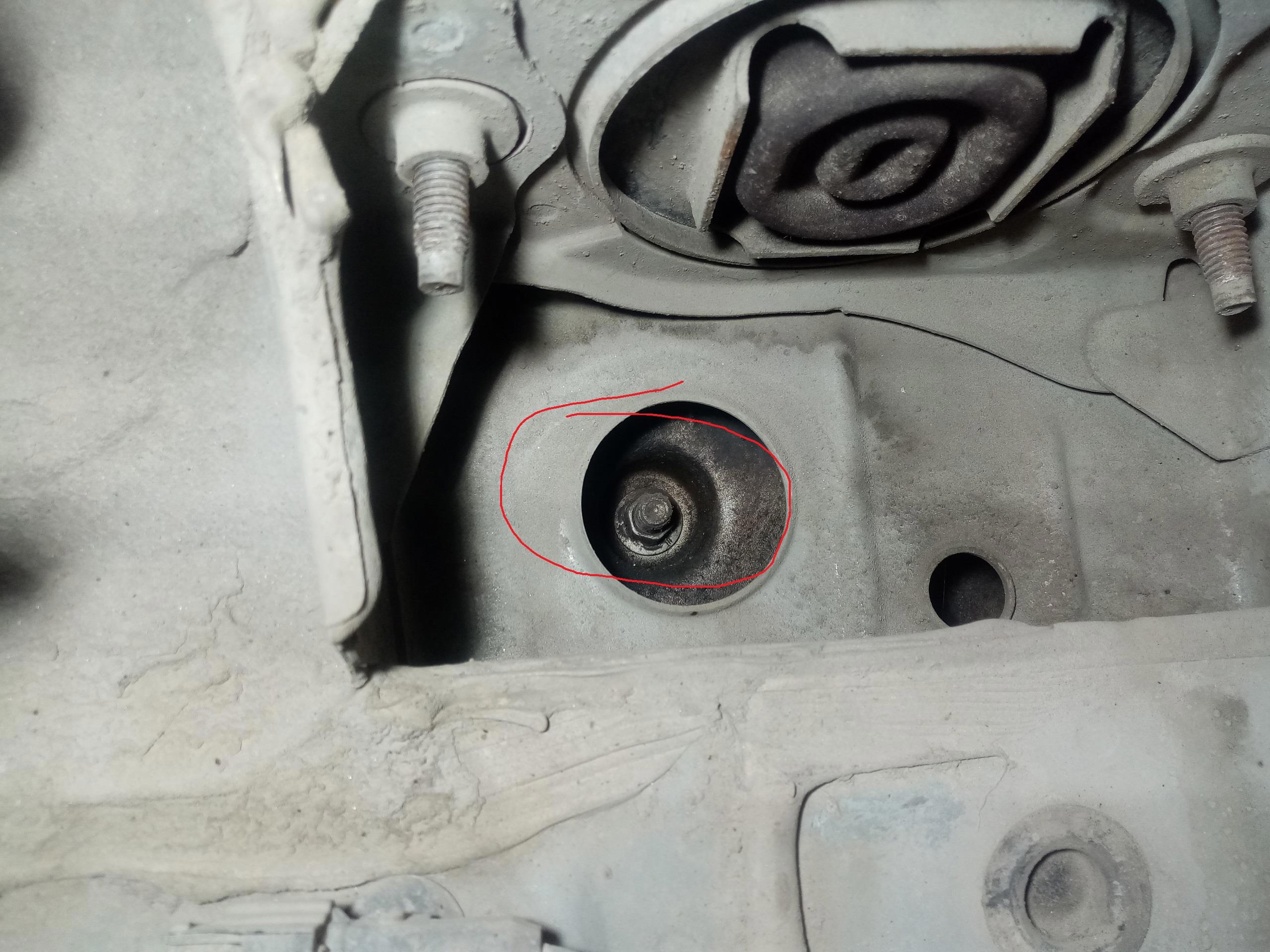 Дырка в правом подкрылке, открывающая доступ к гайке, крепящей верхнюю крышку ГРМ, к которой крепится опора двигателя. Да. В этой конструкции лягушки, которых едят французы, явно сыграли не последнюю роль.