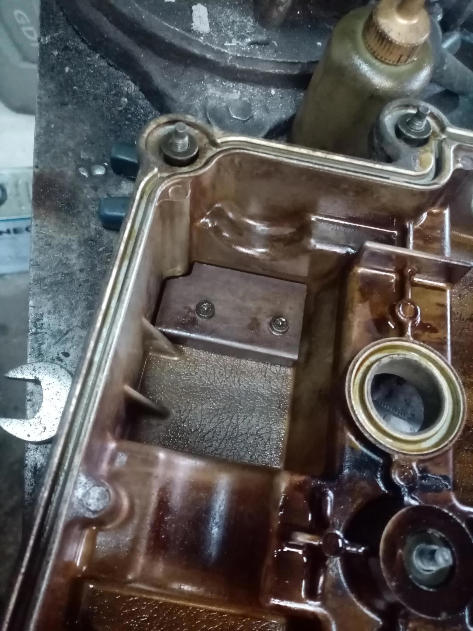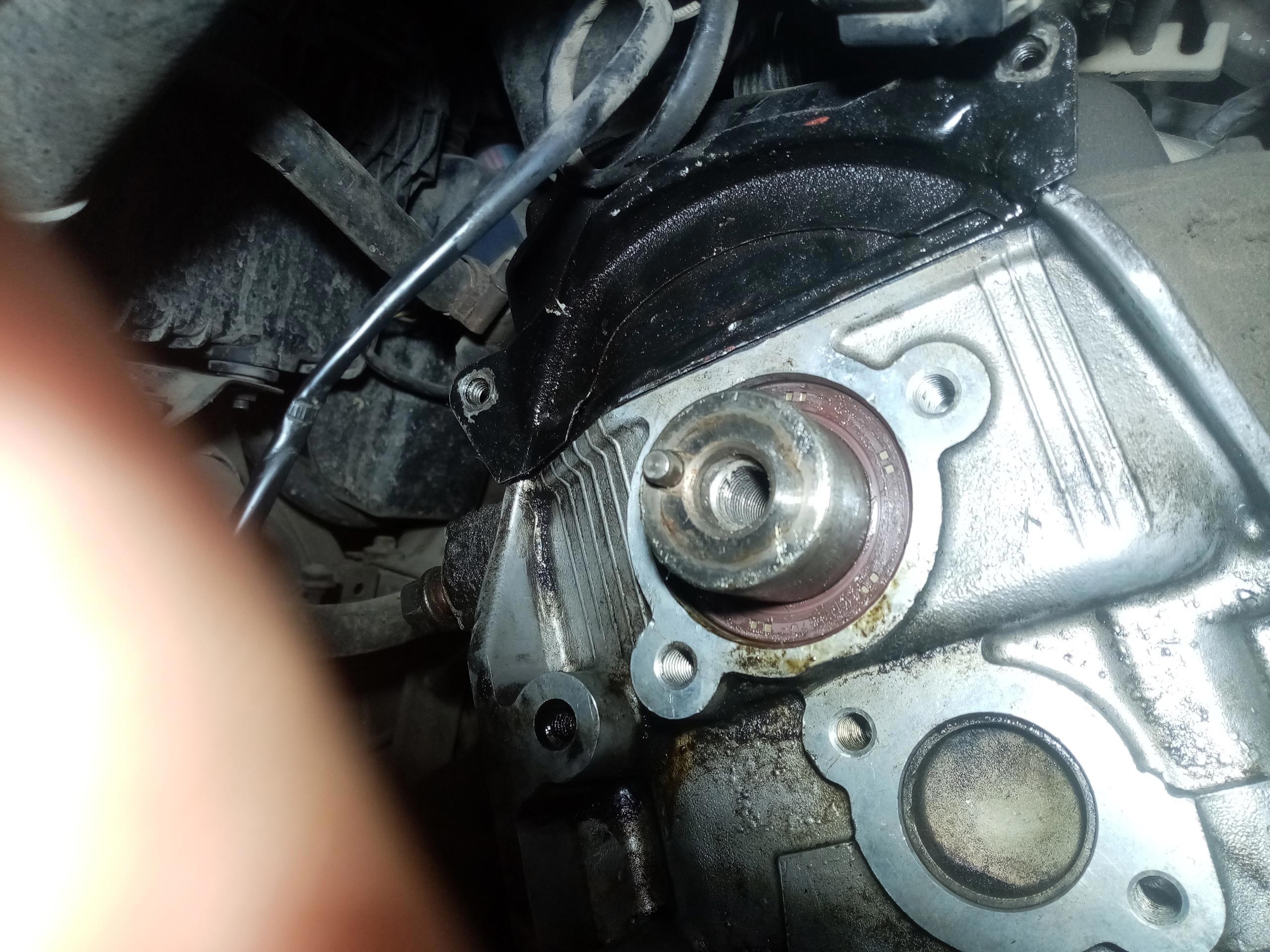 Если приглядеться, сверху сальник утоплен, снизу выпирает. А вот та самая плита с лобовины двигателя. Ну не поверю, что без неё было не обойтись!