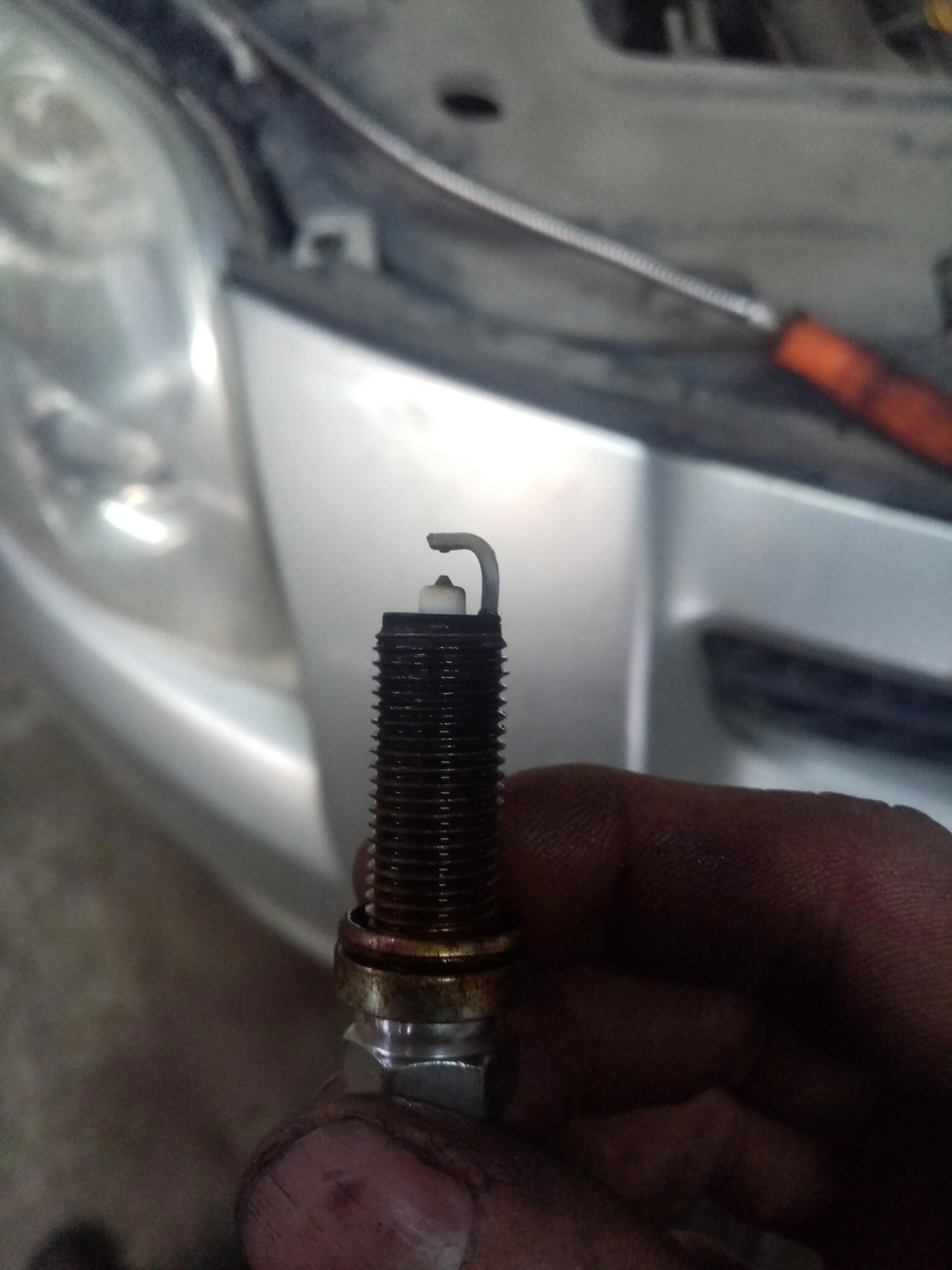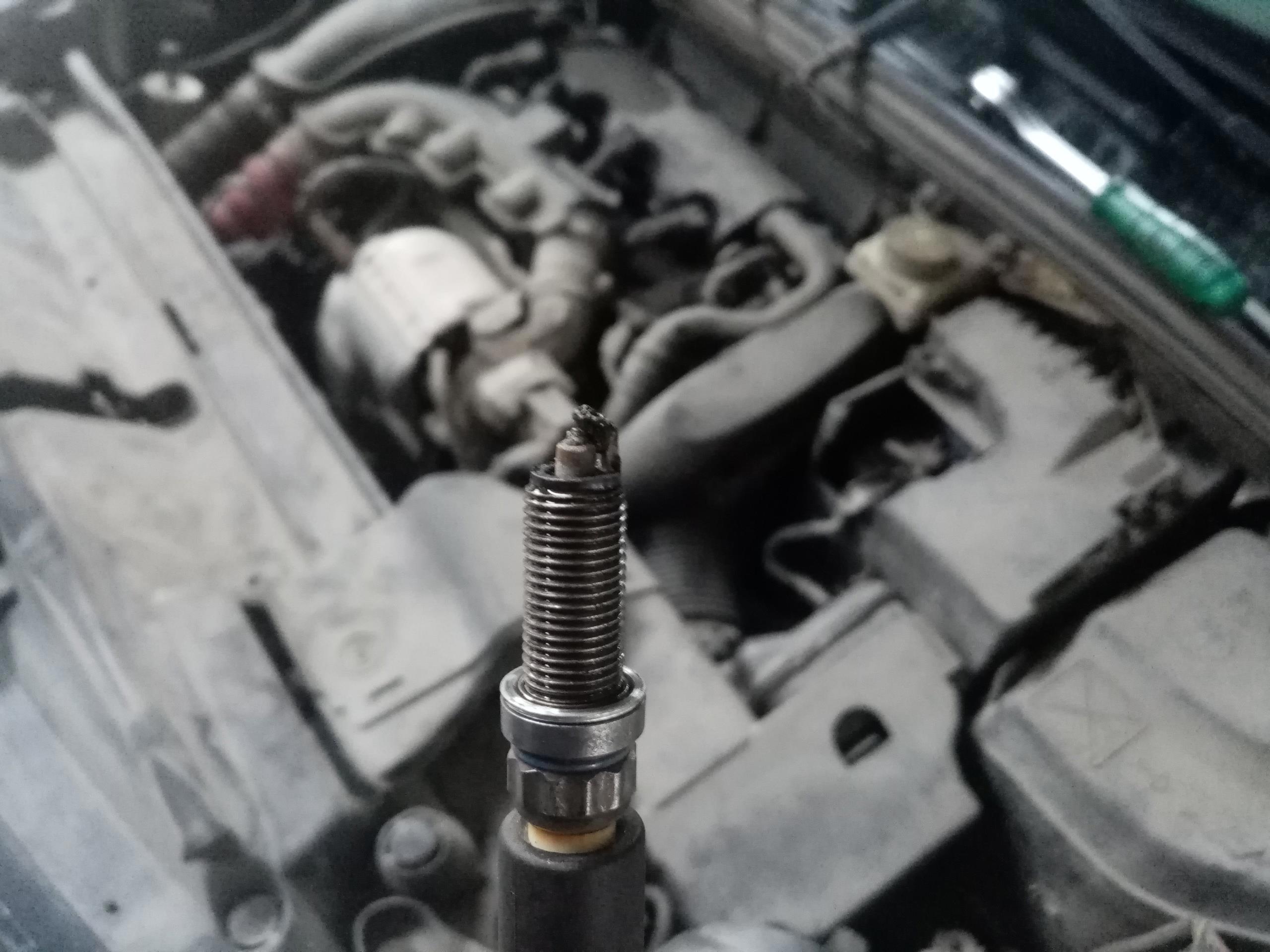 Просто забилось чем-то расстояние между электродами... Заменили свечу, машина поехала. Следом за ней приехала Тойота Аурис. Ему меняли втулки стаба, и что-то ещё... Но это всё не интересно, интересно другое. На фото - первая и вторая свечи, и вторая катушка.