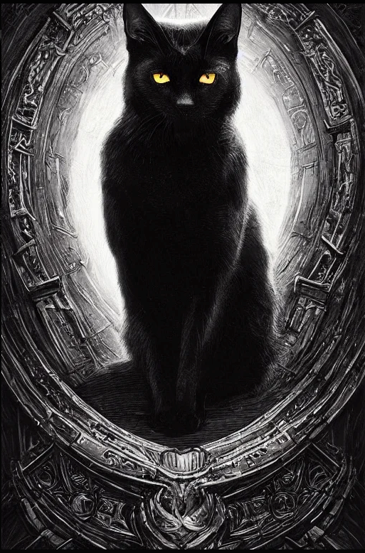 Котов у меня много. Начнём с самого известного - Баюна из рассказа "Сватовство Кощея" (он же - "Сказка кота Баюна"). Хозяйственный колдун и верный друг. А что немного нервный, так жизнь такая...