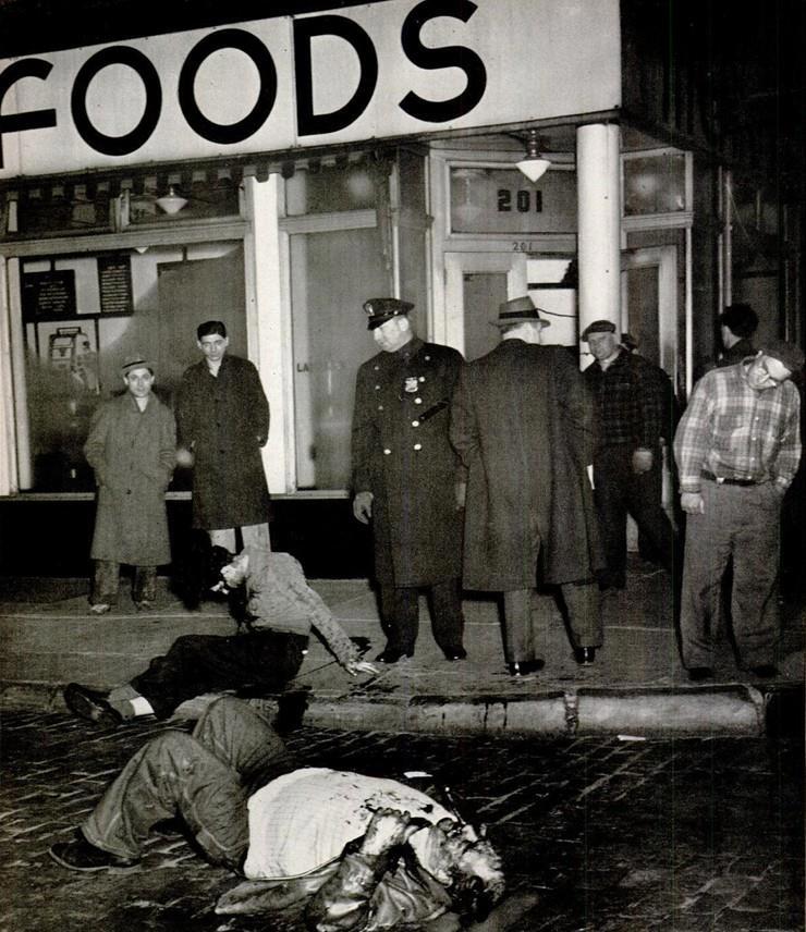 ПАТРИОТАМИ В НЬЮ-ЙОРКЕ на прошлой неделе в нью-йоркском салуне на Парк-Роу обсуждалась военная ситуация в США. Грузчики и моряки, выстроившиеся в очередь у стойки бара, были далеки от самодовольства. Спор все разрастался и разрастался, пока далеко за полночь дюжина или около того мужчин не высыпали на улицу. Наконец кто-то, кто почувствовав, что проигрывает словесный спор, нашел удовлетворительный выход из положения, ударив своего оппонента. Две дискуссионные команды мгновенно выбрали противников и ожесточенно сражались вверх и вниз по Уильям-стрит. Участники боевых действий были итальянского, ирландского, немецкого и простого американского происхождения. Несколько ножей были обнажены. Когда полиция и машины скорой помощи прибыли, они обнаружили девять избитых жертв, разбросанных по двум городским кварталам. Джон Цурк (на переднем плане) был без сознания. Джон Фагарацци пытался с трудом принять сидячее положение. Вопрос военной стратегии все еще оставался нерешенным, и военное положение Америки заметно не улучшилось.