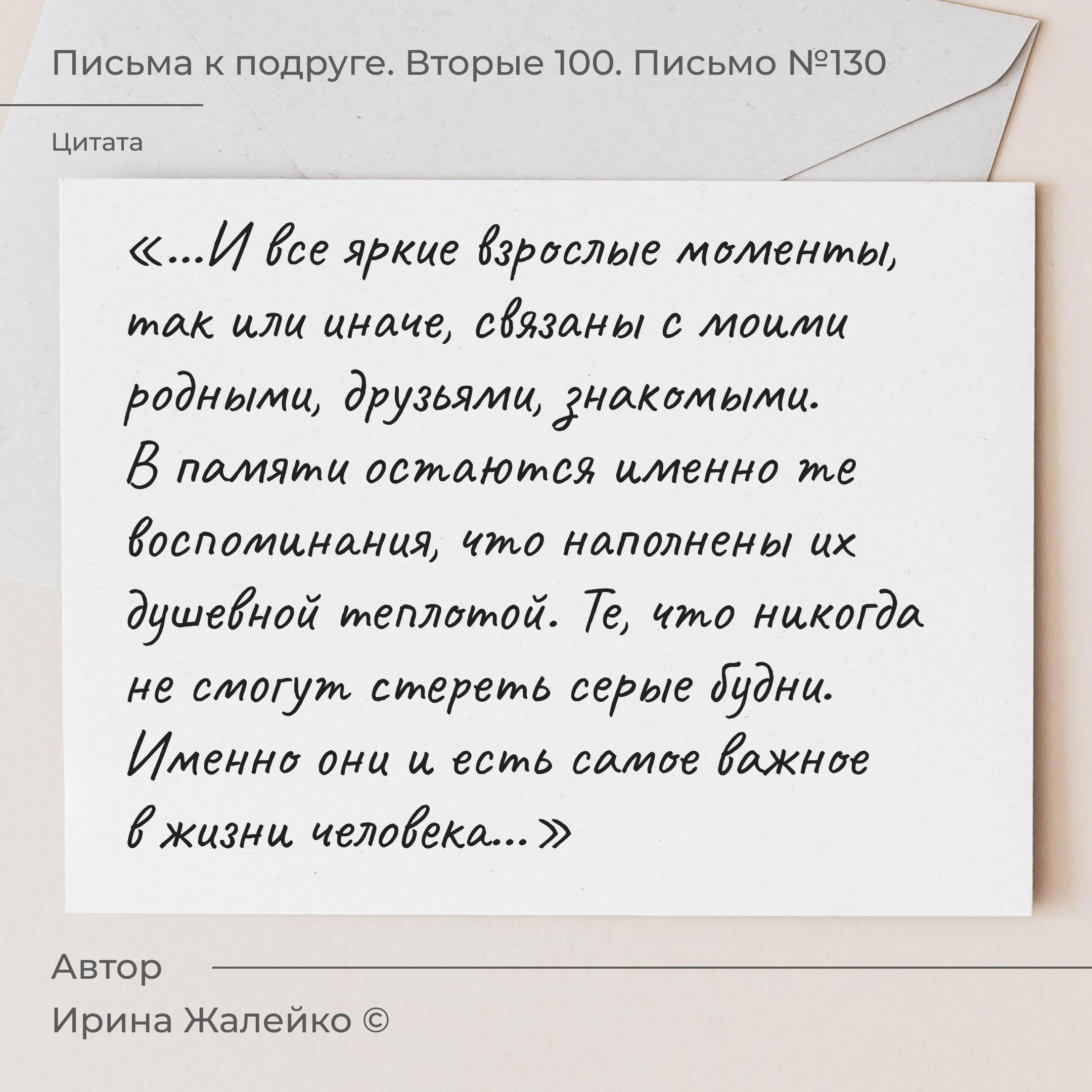 Именно эти размышления я и написала в очередном письме к подруге №130