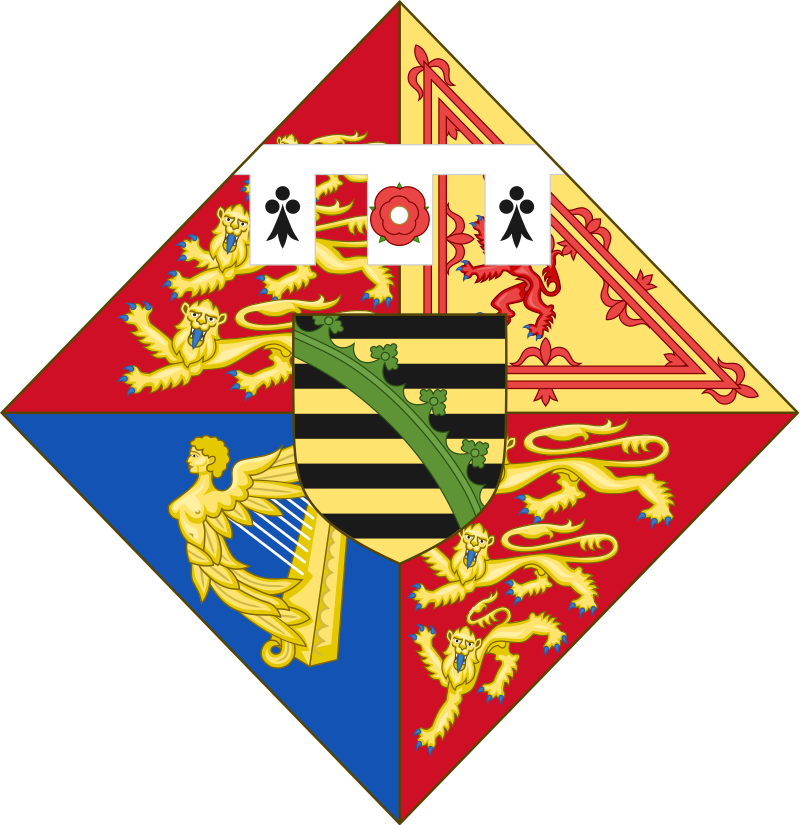 Тут и «три леопарда» (Англия), и «лев» (Шотландия), и «лира» (Ирландия), и «алая роза» Тюдоров + «серебряная лилия» Ланкастеров и даже Веттинский желто-черный щиток поверх всего: полный комплект! Вот кем по рождению была Алиса Великобританская Великая герцогиня Гессенская и Прирейнская.