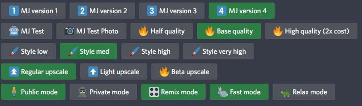 Важно нажать и сделать зеленым MJ version 4. И Remix mode.