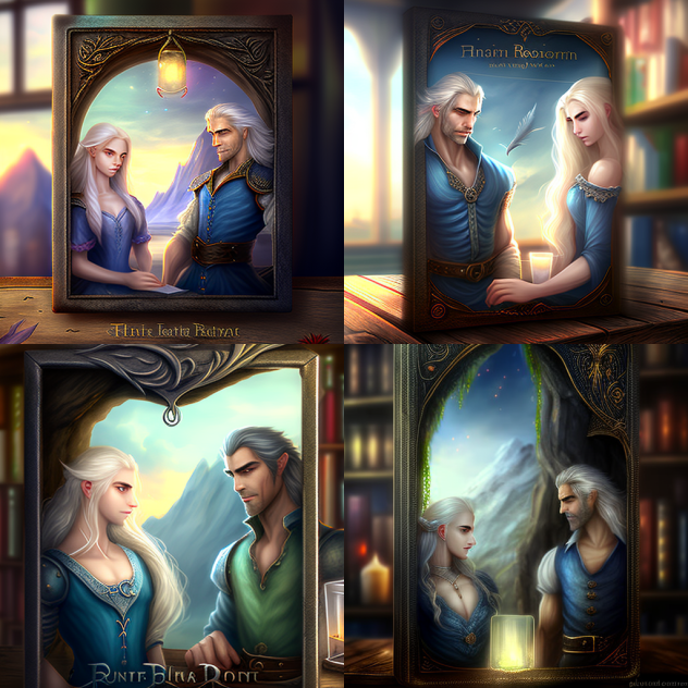 Конечно это всего лишь пример. И при желании можно многое придумать. В том числе смешивая две картинки или картинку и описание. Например вот что будит если картинку выше поставить задать как основу и написать - book cover, fantasy style, frame, realistic.