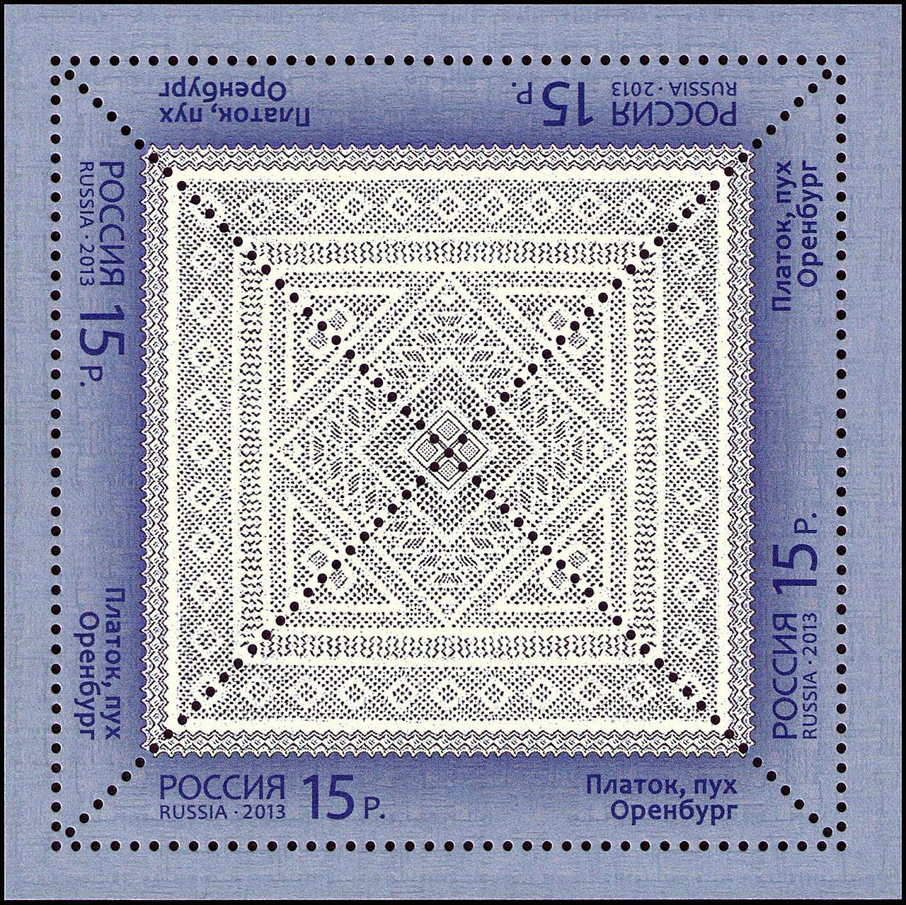 Рисунок оренбургского пухового платка. Почтовая марка России, 2013 г.,  (ЦФА [АО «Марка»] № 1715)