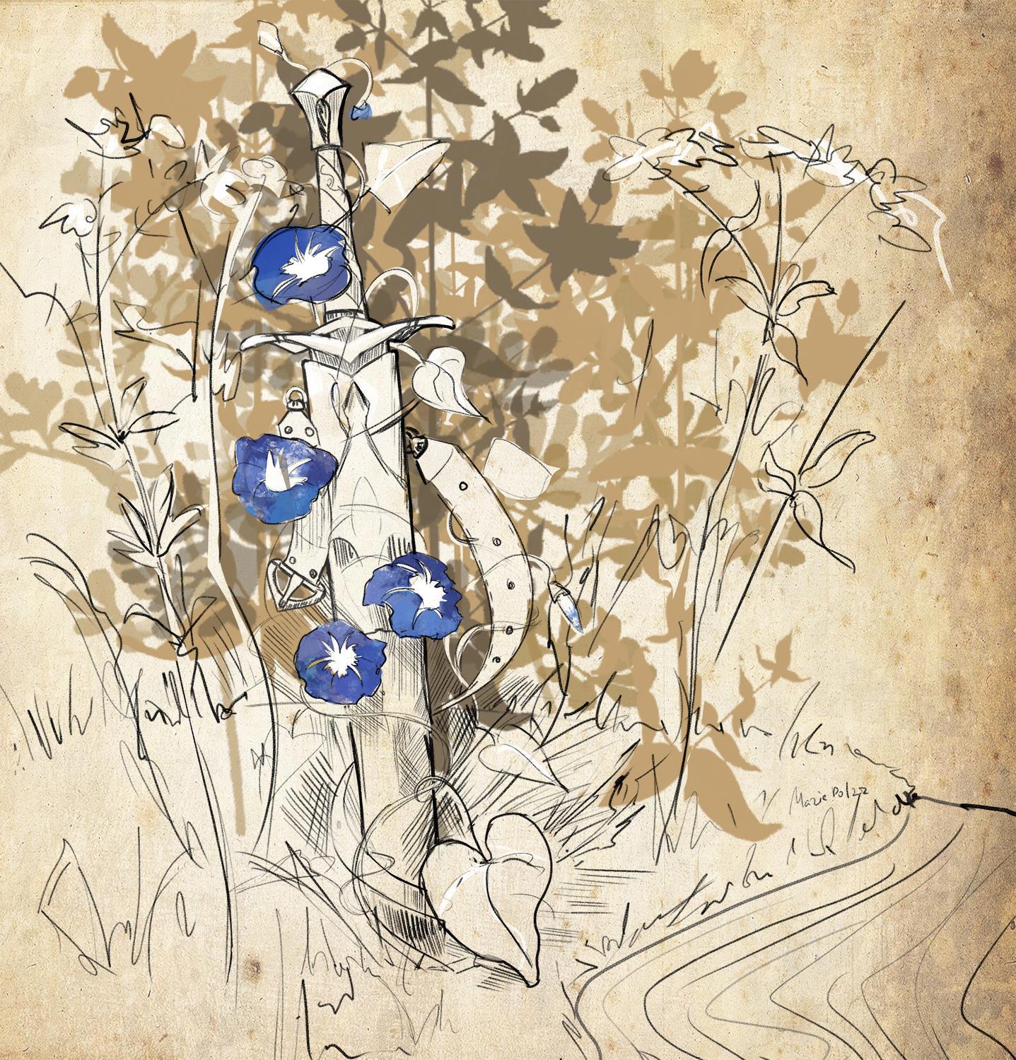 Оплетает вьюнок в ножны схороненный меч.