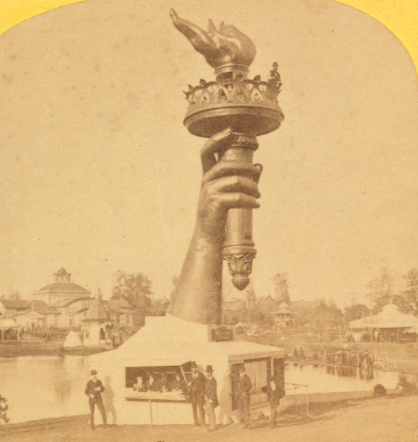 Эту руку в августе 1876 года привезли на Всемирную выставку в Филадельфии. Любой желающий мог купить билет и подняться на балкон факела.