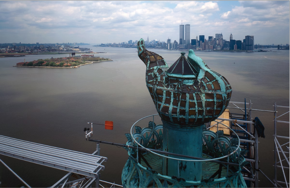 Но вернёмся к Статуе Свободы. Тот самый взрыв сильно повредил руку с факелом. Её, конечно же, отремонтировали, но с тех пор проход на смотровой балкон закрыли для публики. В 1984 году началась реставрация статуи, которая продолжалась два года. В ходе восстановительных работ заменили арматуру каркаса, нанесли защитное покрытие на внутреннюю металлическую поверхность, а ещё полностью заменили факел.