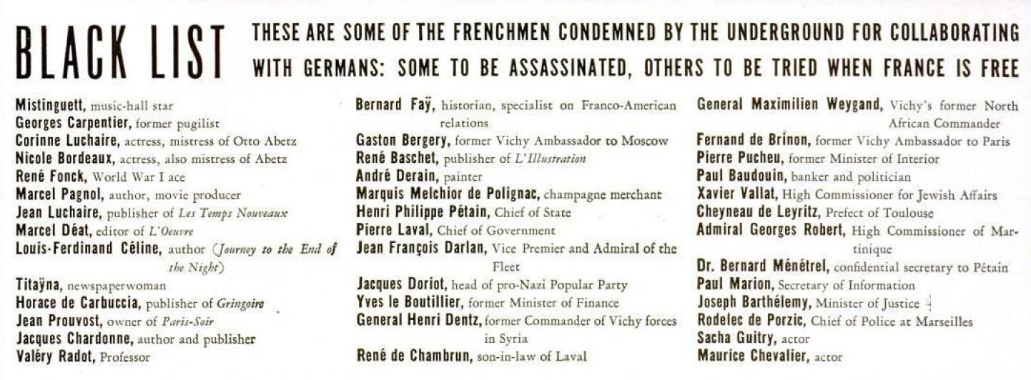 Это было небольшое искажение. Даже в 17 лет Коринн была тайной любовницей Отто Абеца, приближенного Гитлера и обозревателя пятой колонны в довоенной Франции. Когда Абец стал послом во время оккупации, Коринн была любимицей Парижа, живя жизнью в шелках и шампанском, в то время как более брезгливые парижане голодали. Ее салон уступал по популярности только ее будуару, который в разное время посещали граф Чиано, Пауль Йозеф Геббельс, Пьер Лаваль и множество немецких и итальянских офицеров, включая одного капитана люфтваффе, от которого она родила дочь. Ее отец, Жан Люшер, давний коллаборационист, который гордился положением своей дочери как куртизанки № 1 в оккупации, стал редактором крупнейших парижских газет Le Matin и Nouveaux Temps. Для дружественных Люшеров жизнь в побежденной Франции была веселее, чем когда-либо прежде. Только победа испортила их вечеринку. Отца Жана выследили и тут же расстреляли за государственную измену. Дочь Коринн, найденная в Германии, была доставлена в зал суда Парижа две недели назад, чтобы ответить за свой собственный проступок. Пока суд перечислял длинный список любовников и вечеринок, которыми она наслаждалась, она молча стояла рядом, ее гордость и красота исчезли, ее лицо постарело от распутства и туберкулеза. Когда судьи приговорили ее к 10 годам "национального унижения” без каких-либо привилегий гражданина Франции, она могла только признать: "Я была молода и глупа. ... Я не осознавала....”