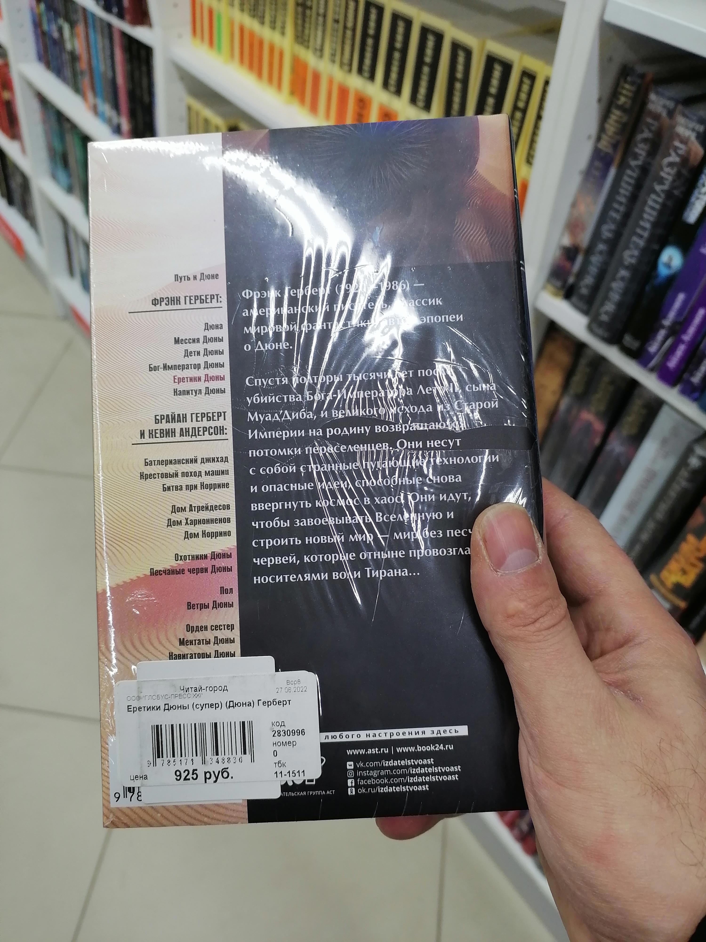 | успешно про них забыл. И, вот, захожу я такой вчера в читай-город, а там тебе и Еретики и Капитул, бережно обтянутые полиэтиленчиком!!!  Понимаете мою реакцию? Я такой: "Ну, конечно же! Не так давно вышел фильм Дэни Вильнёва!" а наши издатели любят всякие книжки выпускать под фильмы   Счастья полны штаны!!!   Беру я такой книжецу с полки, а она 925 рэ. стоит!!! По косарю за штуку, Карл!!!   Мне, конечно, присущи спонтанные и эмоциональные поступки, но вывалить 925 рэ. я оказался не готов, но и сдаваться просто так никто не собирался   На помощь пришел известный интернет-магазин, где я нашел точно такую же книженцию и всего за 570 деревянных  она приедет ко мне 19-го ноября   А на новый год подарю себе Капитул Дюны   Вот такая история   | |