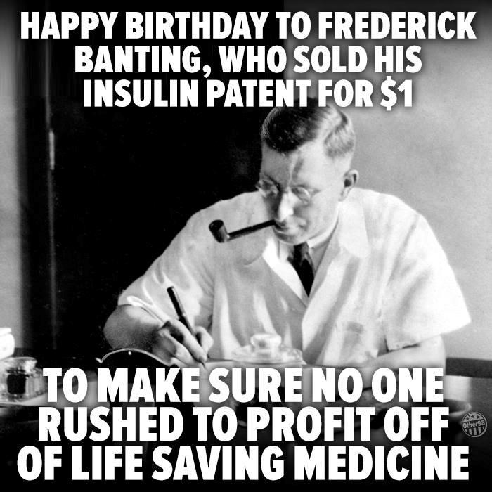 Запомните это имя, кто не знает: Фредерик Грант Бантинг. Вспомните лишний раз, кто знает. Многие из нас живы благодаря ему. А все эти бедняжечки, потерявшие за один день жырные ярды зелени, наживаются на его открытии и его бескорыстии.