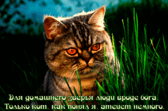Такого шкодливого кота у меня отродясь не было ни до, ни после него. Тихон грыз всю обувь и кожаную, и синтетические кроссовки, сумки, перчатки, носки, если кто не успеет спрятать. Даже ножки у мебели грыз. Кроме того Тихон оказался на редкость голосистым котом. Он и пел, и орал, и разговаривал целыми предложениями. Иногда мне казалось, что мой кот умеет ругаться матом похлеще, чем старый боцман. Вы верите в переселение душ? Помните шуточную песню Владимира Высоцкого «Песенка о переселении душ»? Там есть такие слова: «Быть может, тот облезлый кот - был раньше негодяем, а этот милый человек - был раньше добрым псом». Какая душа жила в моем Тихоне, я не знаю, но кот был не по-кошачьи сообразительным. Тихон любил смотреть телевизор, особенно новости. Смотрел и комментировал. Вот честное слово! Ворчал и ругался, а порой стукал лапой по полу.