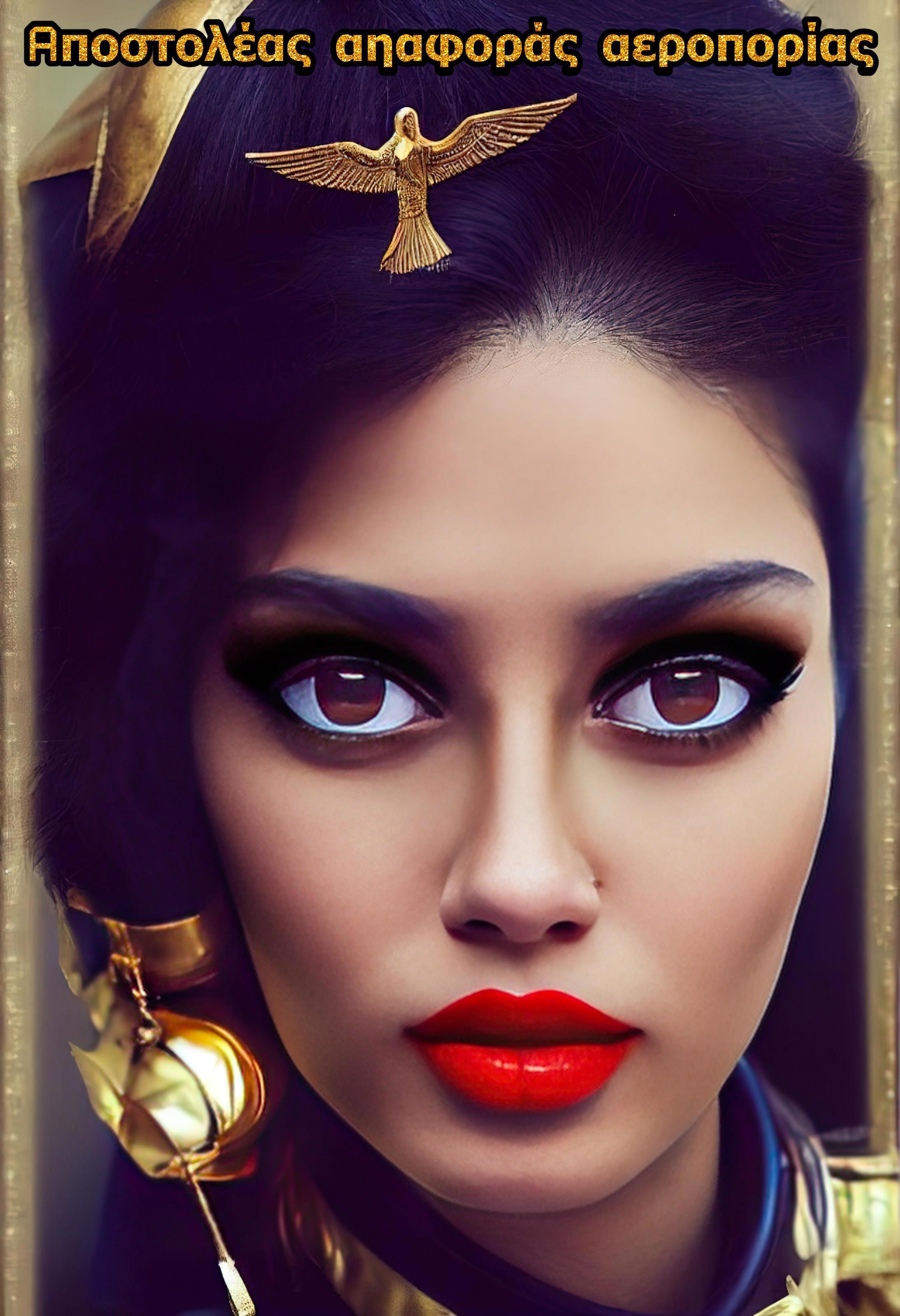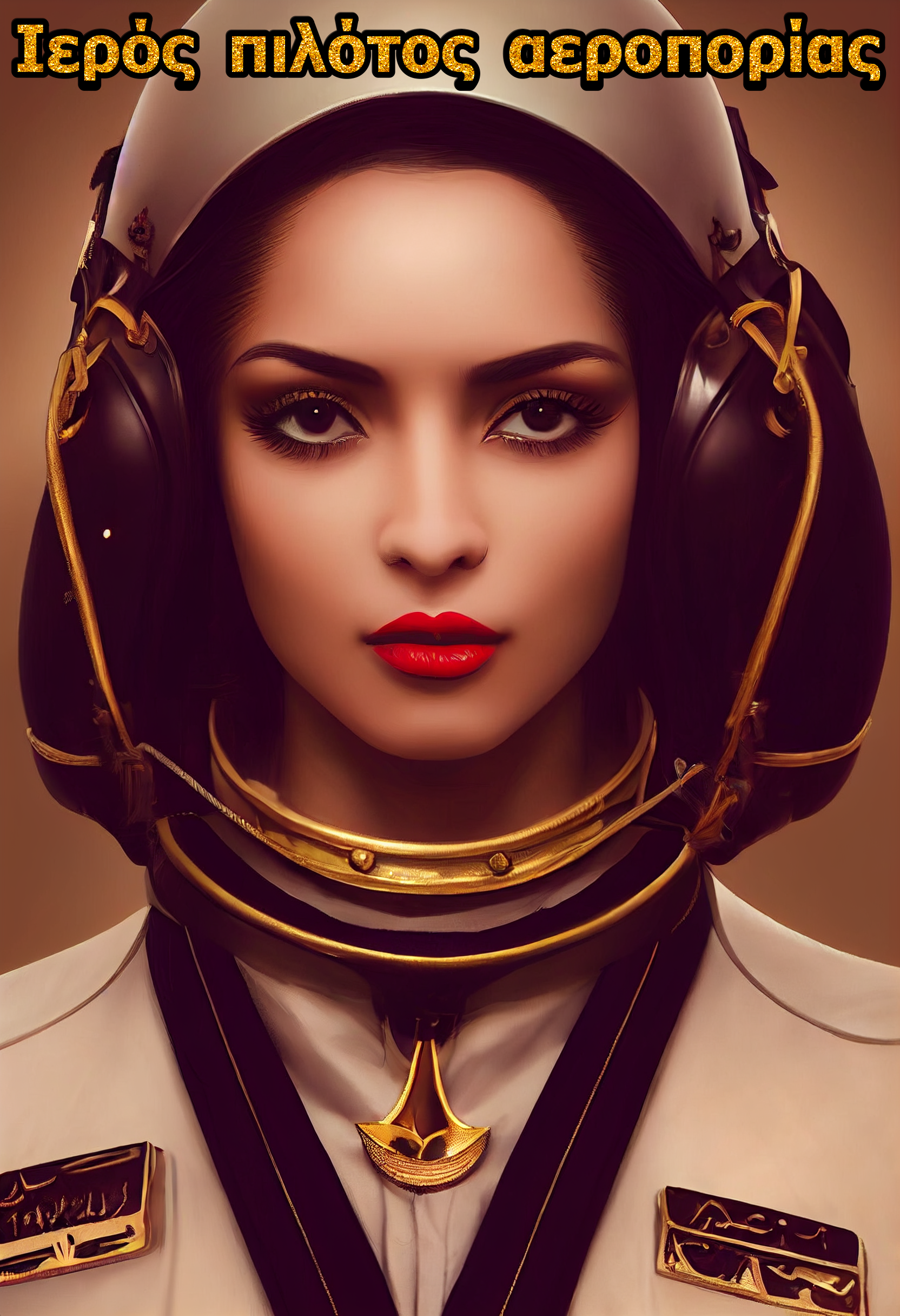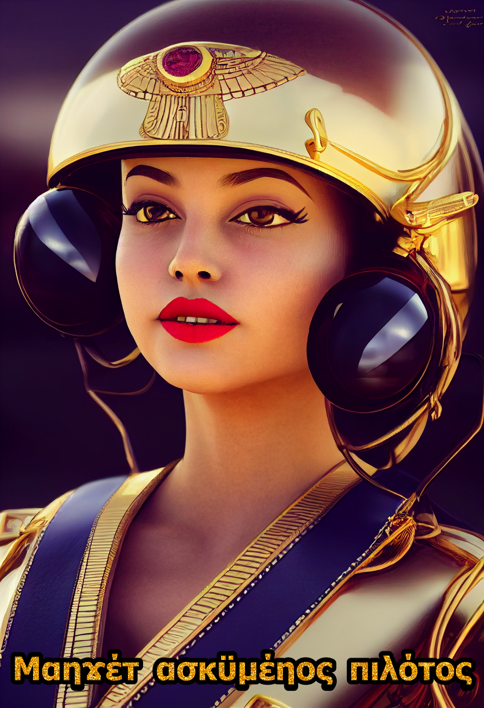 Этой девушке 18 лет, она учится на пилота в престижной лётной школе "Манджет", названной так в честь солнечной барки бога Ра, "Лодки миллионов лет". Стилизованная эмблема барки Манджет, как её смогла изобразить нейросеть, вы видите на лётном шлеме девушки. Юная лётчица словно говорит своим ровесникам: хочешь полетать по небу как великий Ра - поступай в нашу лётную школу!