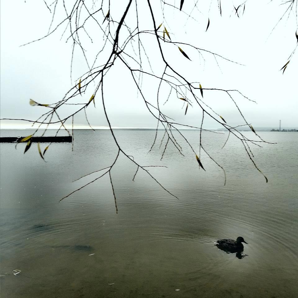 Сегодня утром выпал первый снег. Его уже нет, но он пойдёт снова, а пока ещё серая мрачная осень.