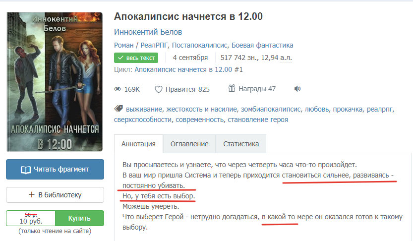 Вместо тысячи слов. Самые дотошные могут сравнить последнее предложение аннотации с последним предложением в рекламном посте.