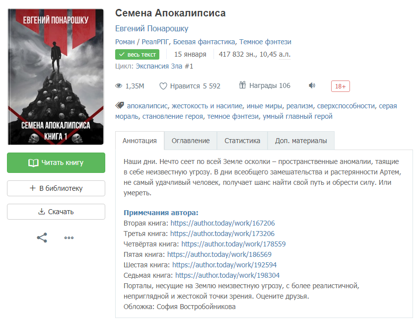 Судя по семи книгам, Артём всё-таки не умер. Фраза «Оцените, друзья» пишется с запятой. Но раз просят оценить, то пожалуйста: