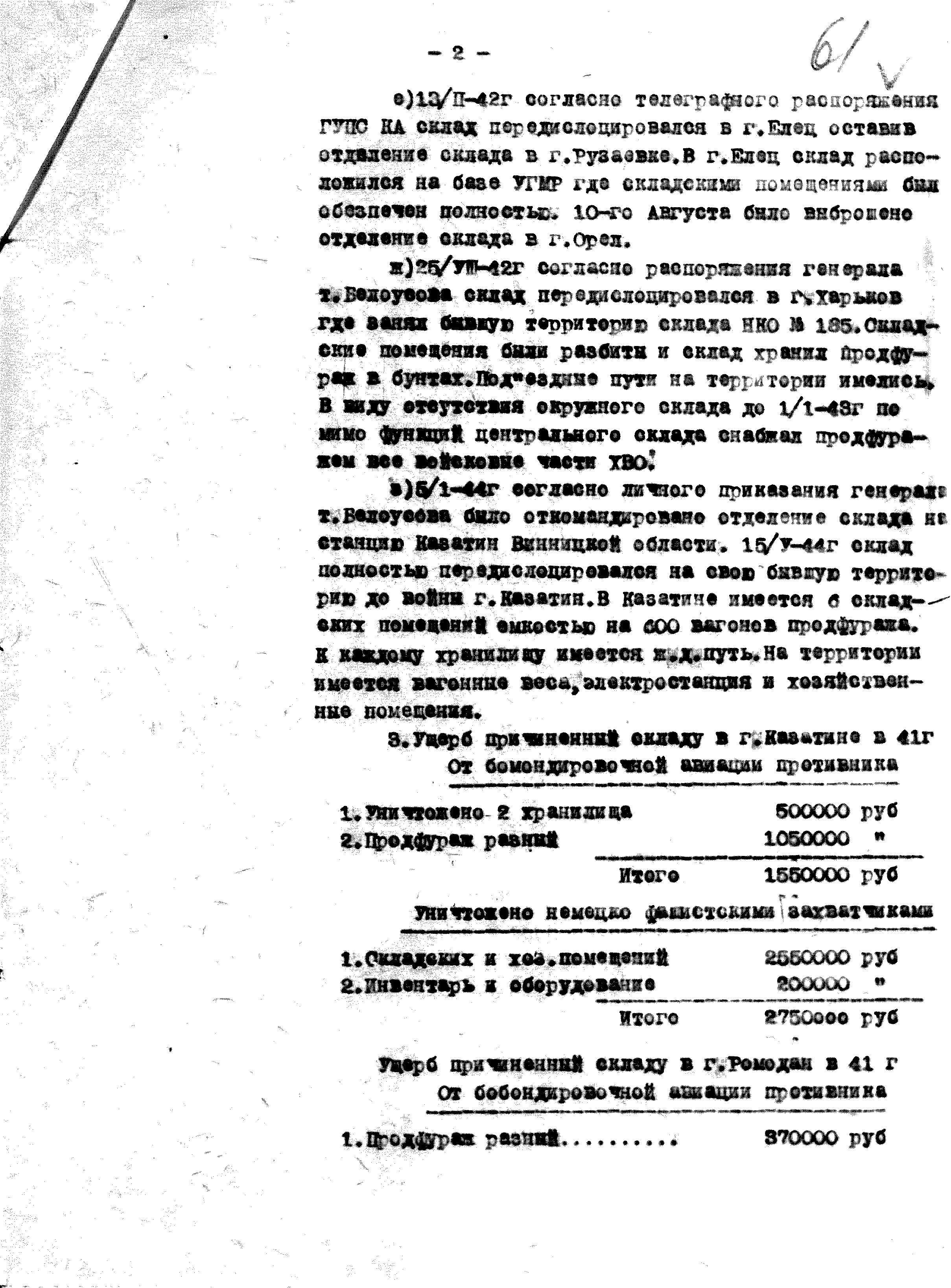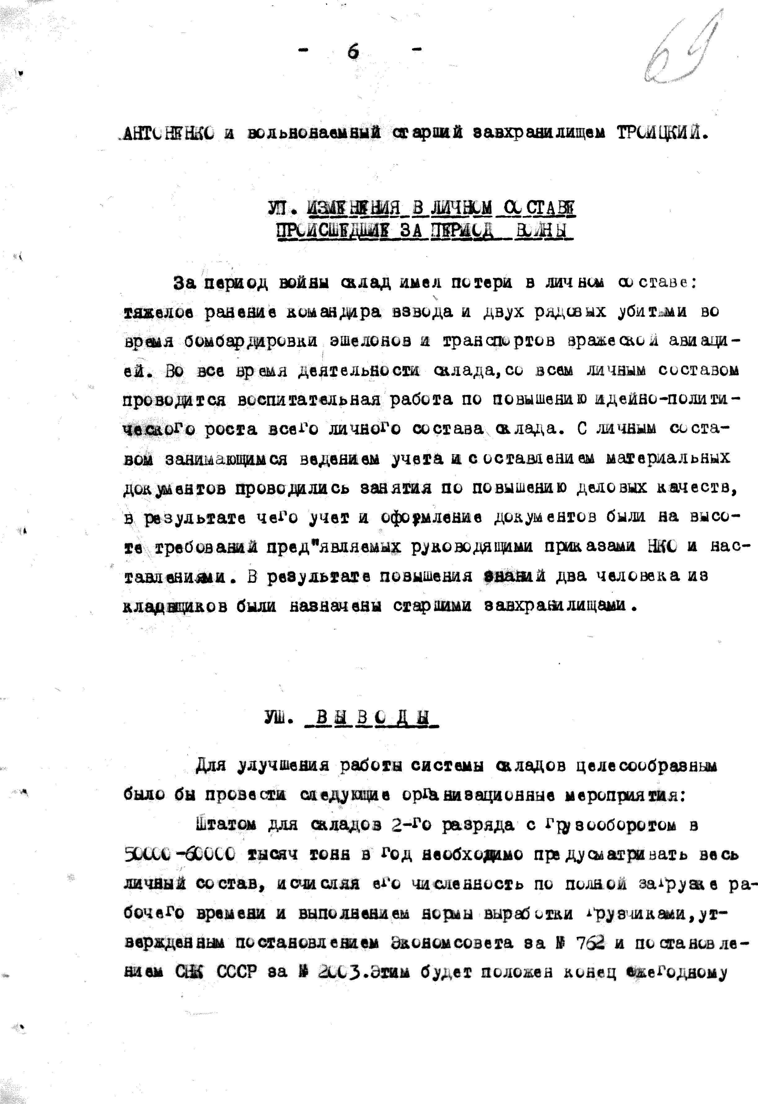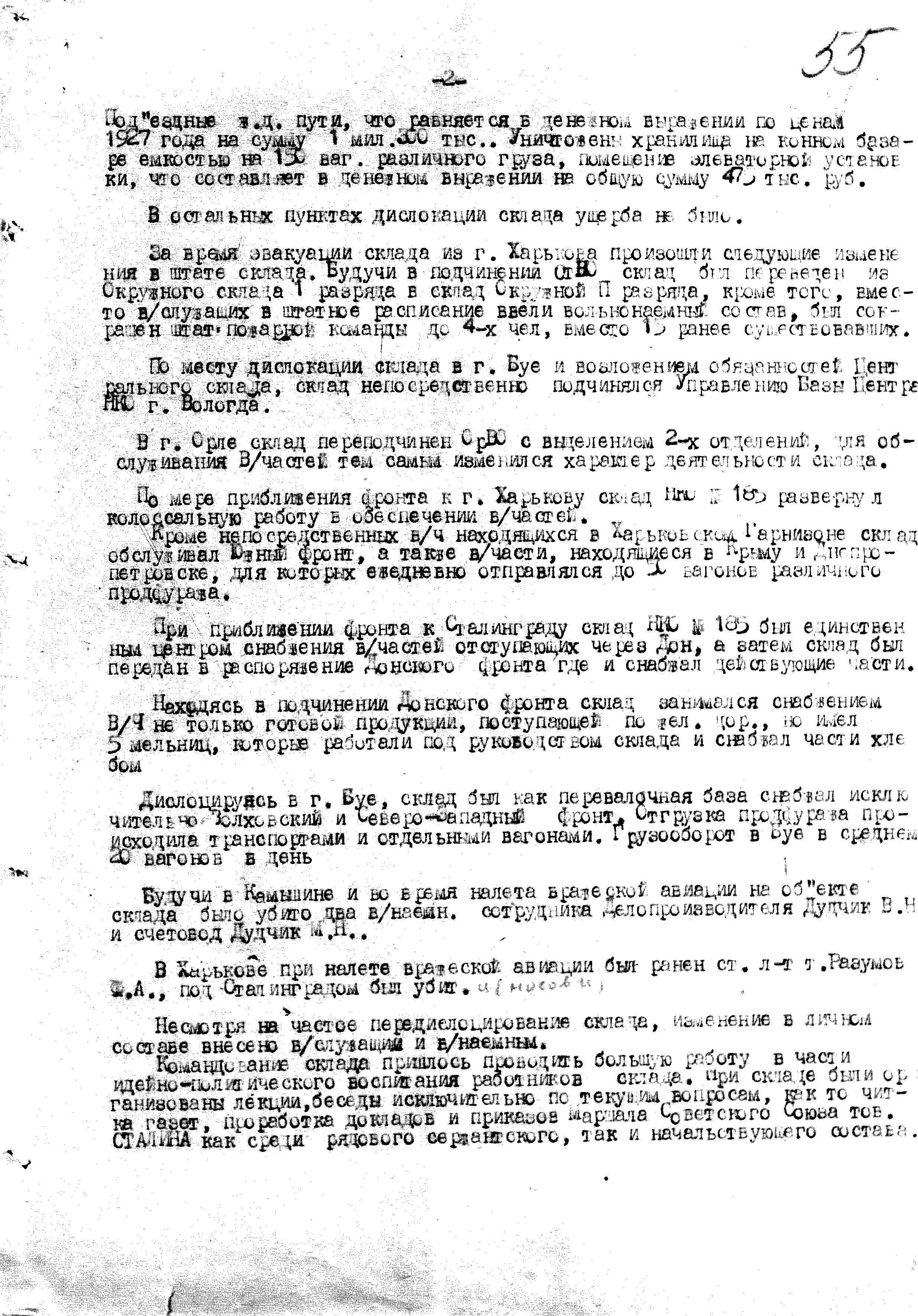 Неоднократно перемещался и размещавшийся до войны в Харькове 185 продсклад НКО. Всего три листа отчета, но и из них виден колоссальный объем работы, произведенный складскими сотрудниками.