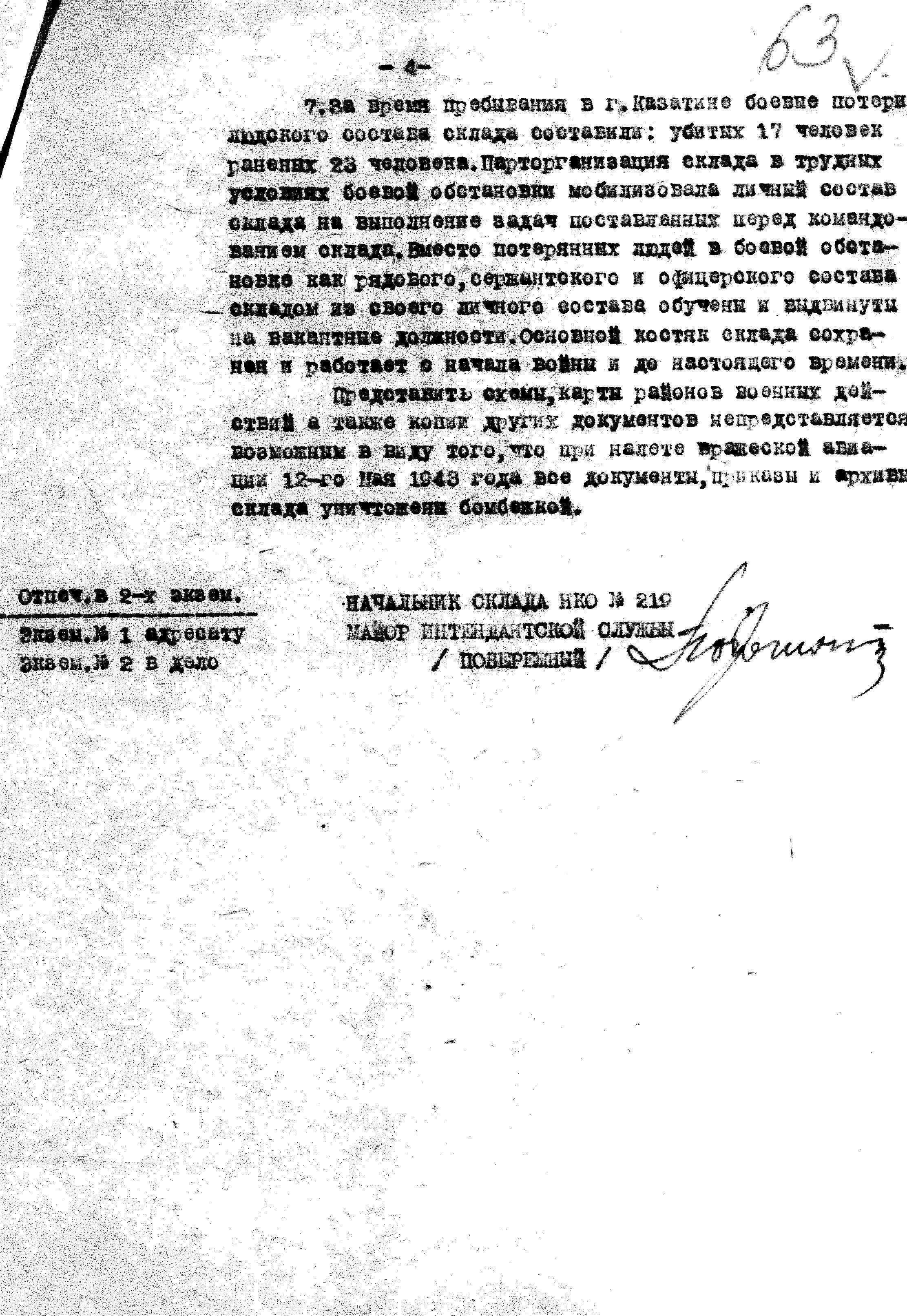 Не раз и не два побывали под вражеской бомбежкой работники 219 продсклада НКО. Но, каждый раз они находили в себе силы, чтобы тушить пожары, спасать материальные ценности.