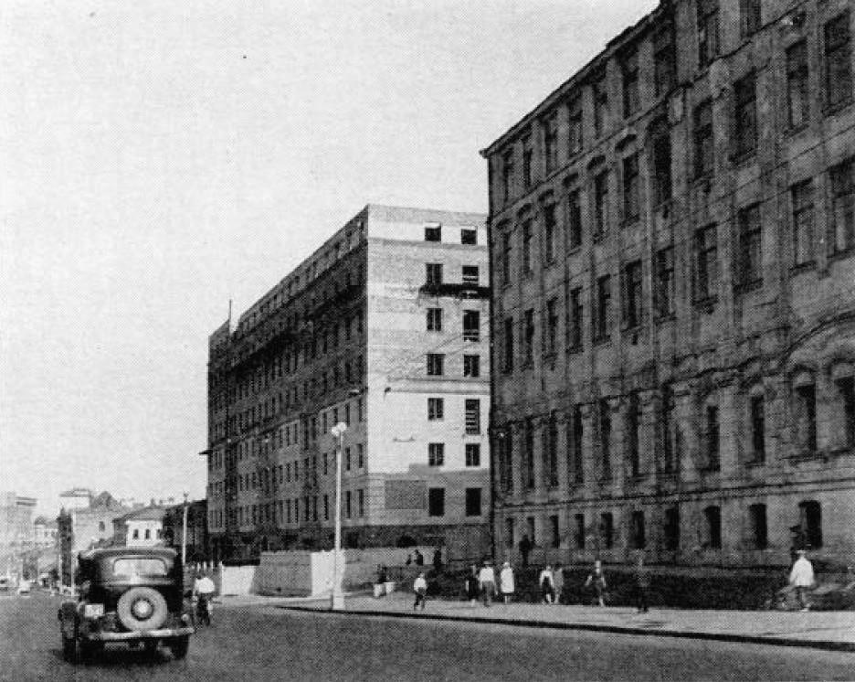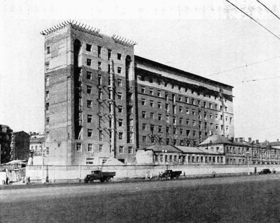 ЖИЛИЩНЫЙ БУМ в перенаселенной Москве отражен в работе над этим многоквартирным домом, который был построен до войны в семь этажей, а сейчас надстраивается еще два.