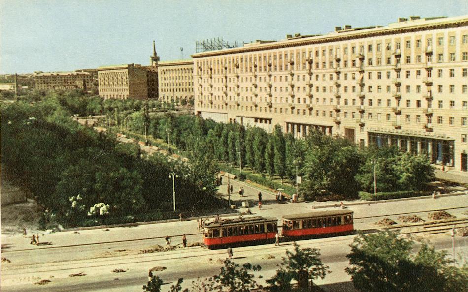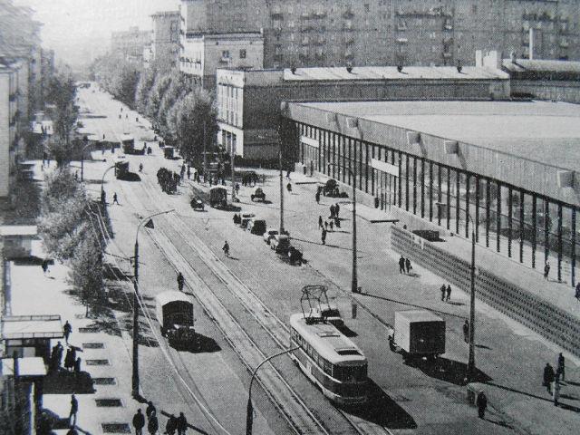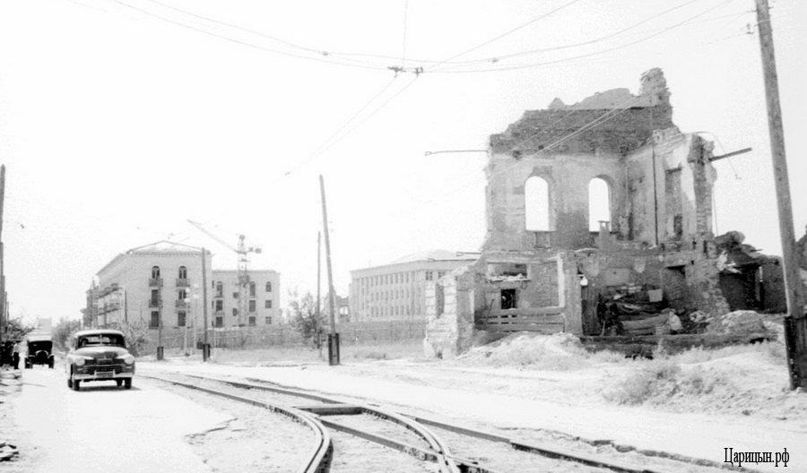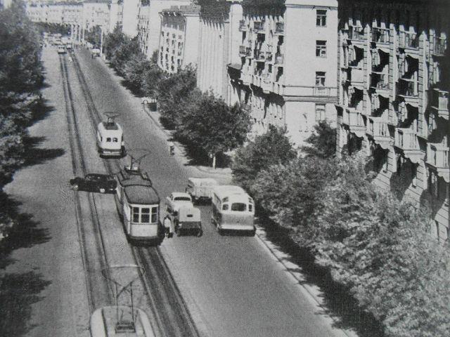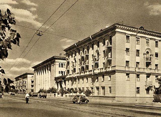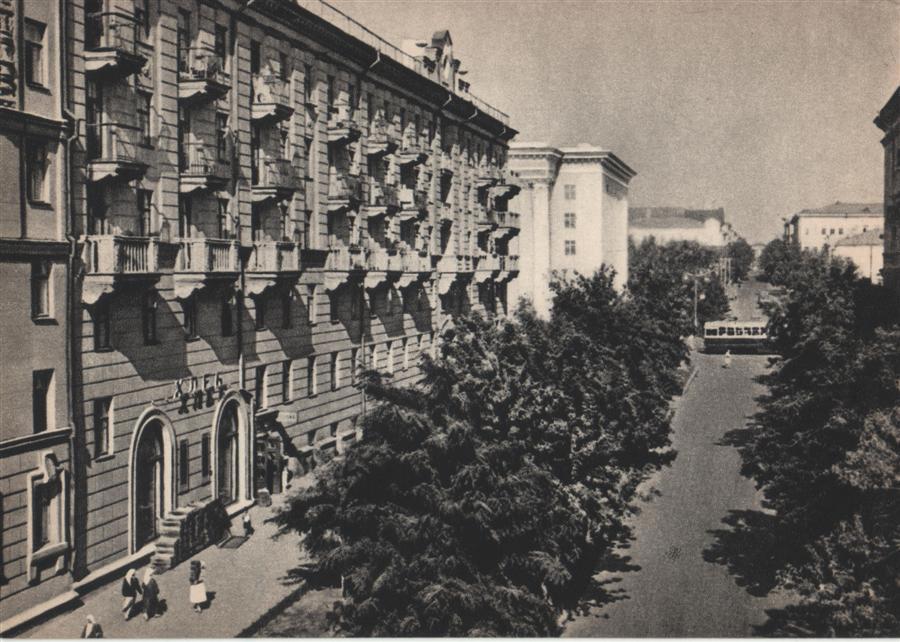Пересечение с недавно отстроенной Аллеей Героев, конец пятидесятых годов, справа дом №4: