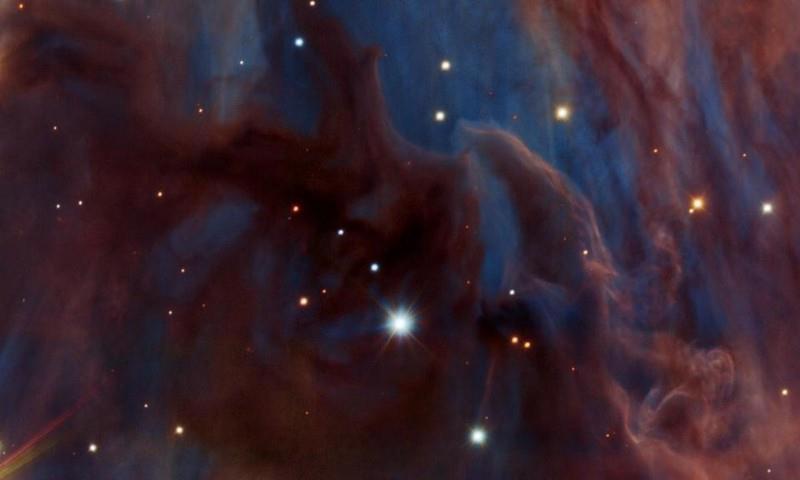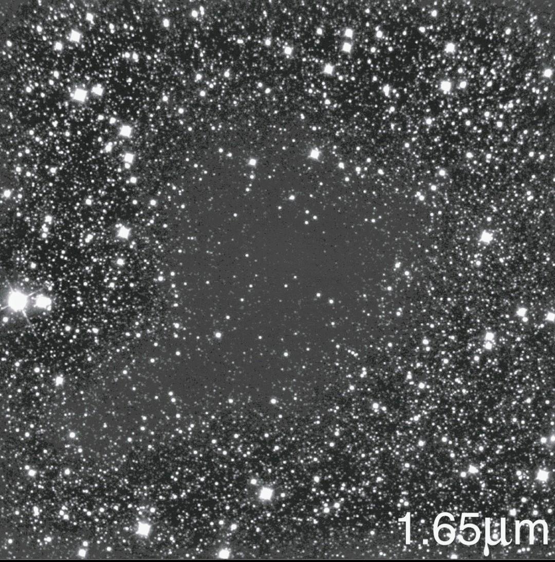 Запыленные области, через которые не могут проникнуть телескопы видимого света, видны с помощью инфракрасных снимков телескопов, таких как VLT со СФЕРОЙ, или, как показано здесь, с помощью прибора ESO HAWK-I. Инфракрасное излучение великолепно демонстрирует места образования новых и будущих звезд, где пыль, блокирующая видимый свет, наиболее плотная. То, что в видимом свете кажется дырой или пустотой, можно рассматривать как то, чем оно является на самом деле: вещество переднего плана, которое просто непрозрачно для определенных длин волн.