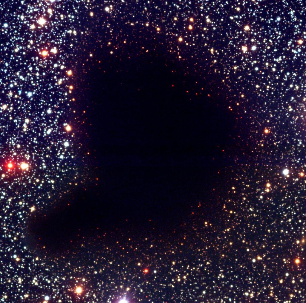 На самом деле это просто облако газа и пыли, находящееся всего в 500 световых годах от нас: темная туманность, известная как Барнард 68. Более 100 лет назад астроном Э. Э. Барнард исследовал ночное небо в поисках областей космоса, где наблюдался недостаток света, вырисовывающегося на устойчивом фоне звезд Млечного Пути. Эти “темные туманности”, как их первоначально называли, в настоящее время известны как молекулярные облака нейтрального газа, и иногда их также называют глобулами Бок.