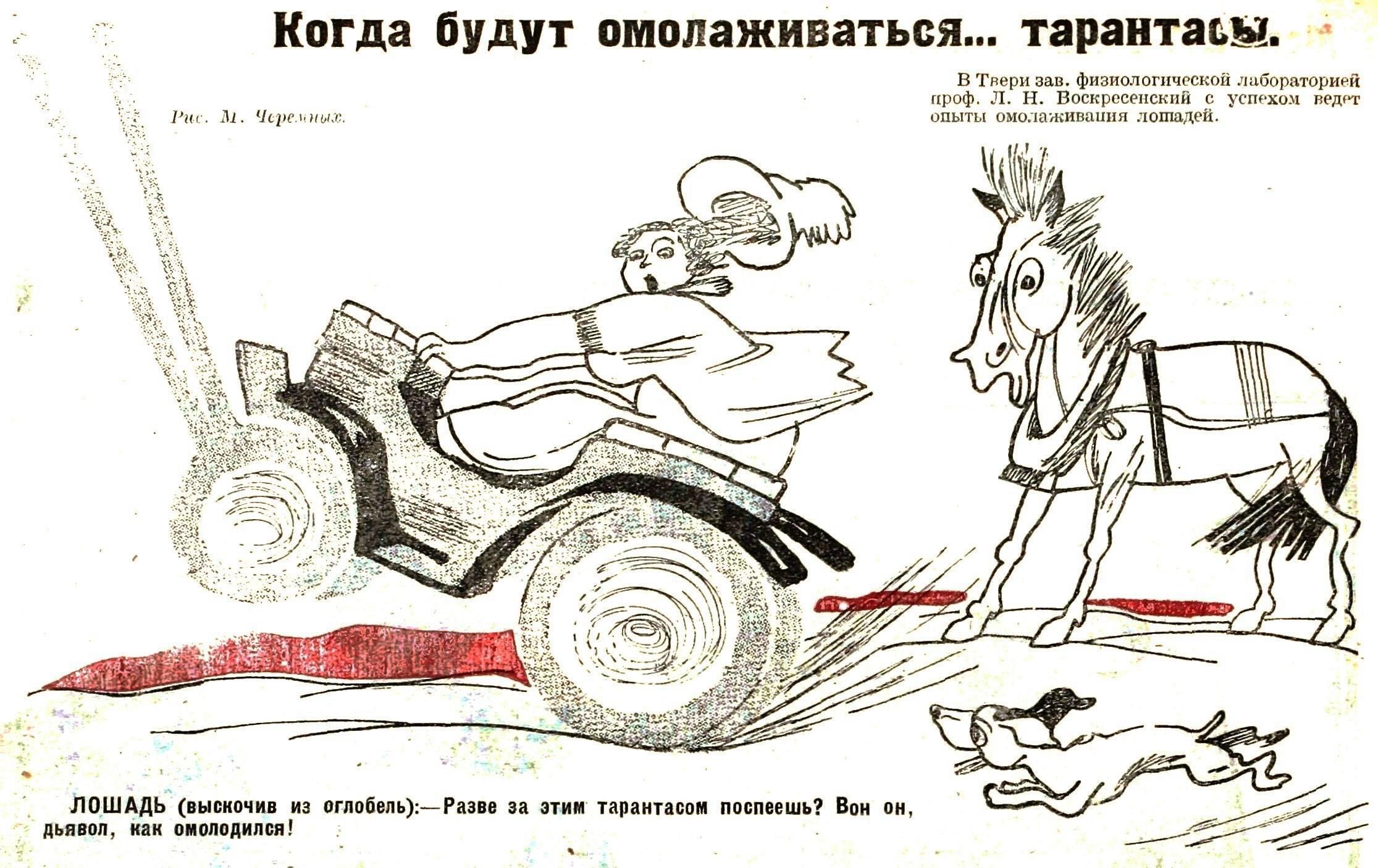 как буквально через несколько номеров появляется новое развитие этой темы - карикатура Михаила Черемных "Когда будут омолаживаться... тарантасы".
