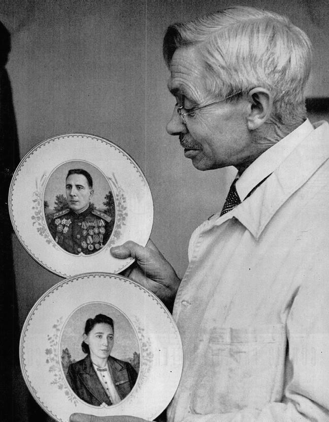 ДРЕЗДЕНСКИЙ ХУДОЖНИК по ФАРФОРУ Герман Лимбах с гордостью демонстрирует две тарелки, которые он создал по заказу местного русского коменданта генерала Катукова. 66-летний Лимбах уже 34 года работает художником на Мейсенском фарфоровом заводе, который производит знаменитый дрезденский фарфор. Он четыре месяца работал над этими портретами коменданта и его жены, делая наброски и ретушируя, чтобы каждая деталь и цвет были в самый раз. Мейсенский фарфоровый завод работает на 30% мощности, и все это идет в Россию. В настоящее время завод находится в собственности государства.