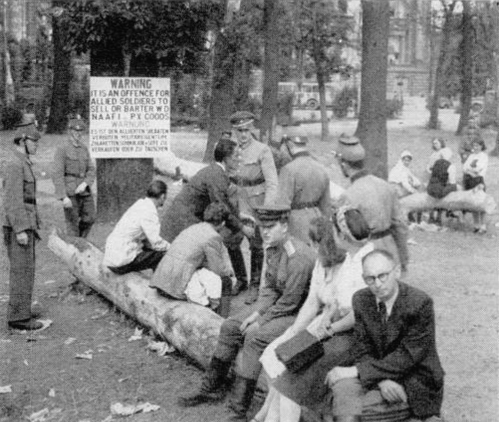 Самый большой, самый открытый и интернациональный черный рынок в Европе расположен в знаменитом лесистом Тиргартене в центре Берлина. Здесь ежедневно собираются толпы солдат и гражданских лиц для торговли, как легальной, так и нелегальной. Немцы, которые с надеждой тащатся в Тиргартен со своими домашними товарами в детских колясках и рюкзаках, хотят еды, сигарет и иностранной валюты.