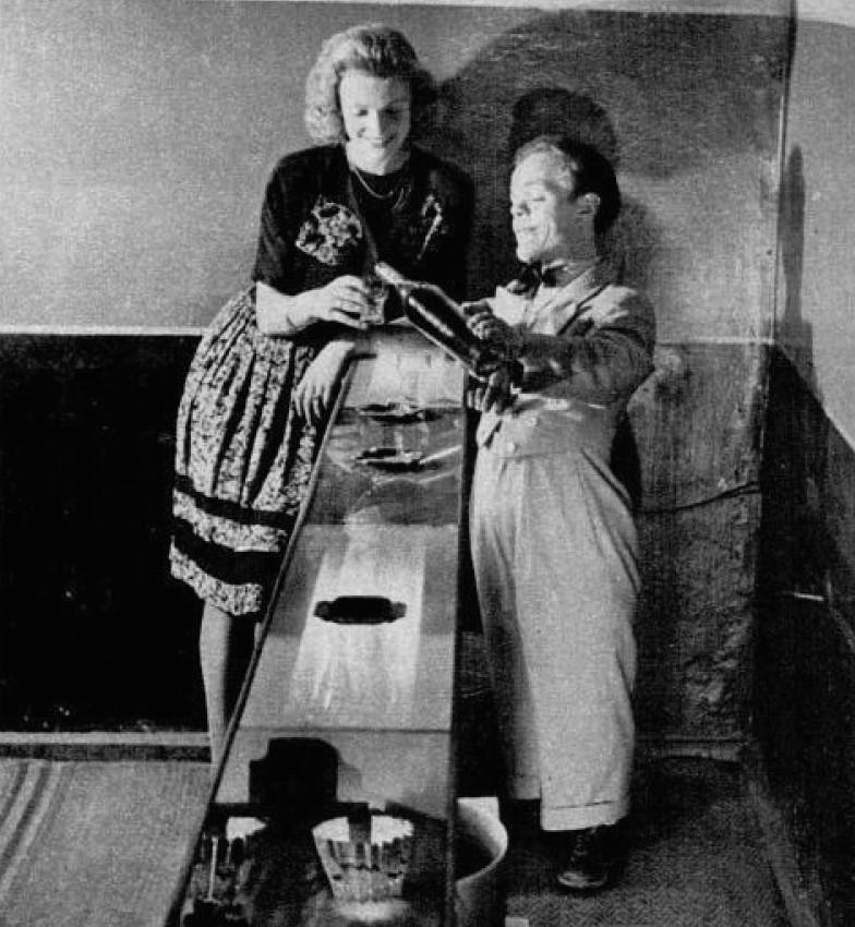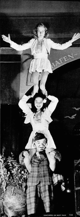 Новый любимец берлинских ночных клубов - карлик ростом 3 фута 8 дюймов по имени Коротышка. Немцы, которые всегда любят гротеск, приняли Коротышку в свои объятия, как только он открылся как звезда Оазиса, переделанного амбара на окраине американской зоны. Ухмыляющийся, неуемный артист, Коротышка, вероятно, один из самых разносторонних карликов в мире, потому что, когда того требует случай, он выступает в роли певца, руководителя оркестра, музыканта, акробата, официанта, бармена, клоуна, мойщика бутылок или жиголо. Это потрясающее выступление одного актера сделало его любимцем GIs до недавнего запрета на покровительство американцев немецким ночным клубам, но прежде чем они ушли, GIs назвали его Коротышкой и научили технике гладких рук.