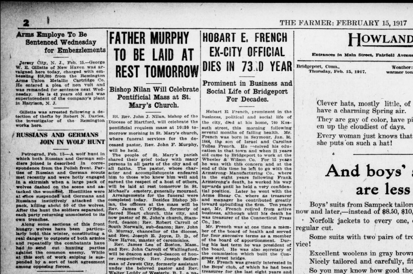 В газете The Bridgeport evening farmer за 15 февраля 1917 года была заметка "Русские и немцы объединяются в охоте на волков".