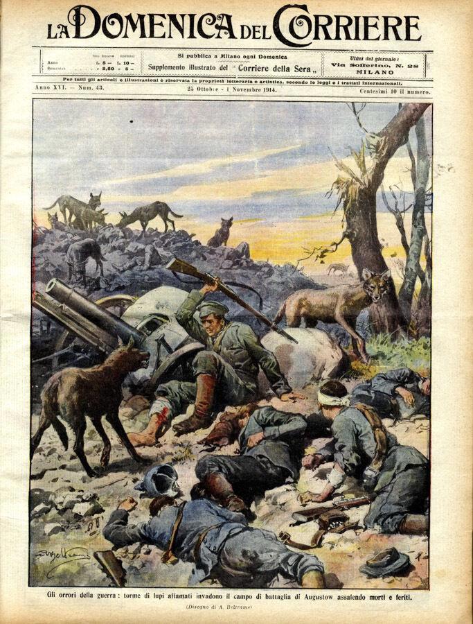 Публикация в газете The New York Times была не первой, упоминавшей нападения волков на солдат. Ещё в ноябре 1914 года 43-й номер популярного итальянского еженедельника "La Domenica del Corriere" украсила иллюстрация Акилле Бельтраме, на которой изображалось, как после контрнаступления русских в районе Августова волки набрасывались после боя на раненых и на трупы погибших солдат. От Августова до Каунаса всего лишь 120 км.