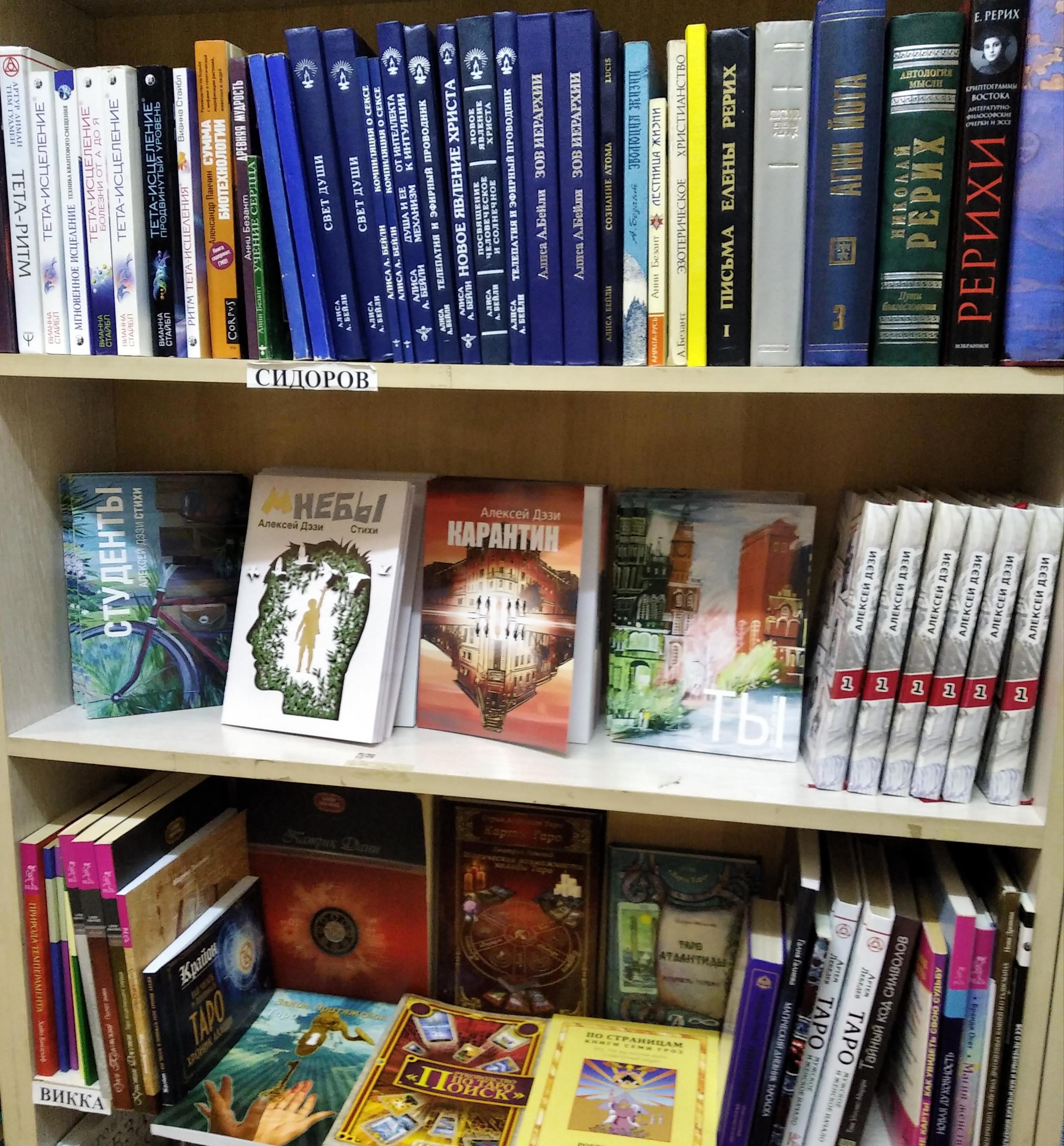 И пялимся на полку с книгами Алексея Дэзи: