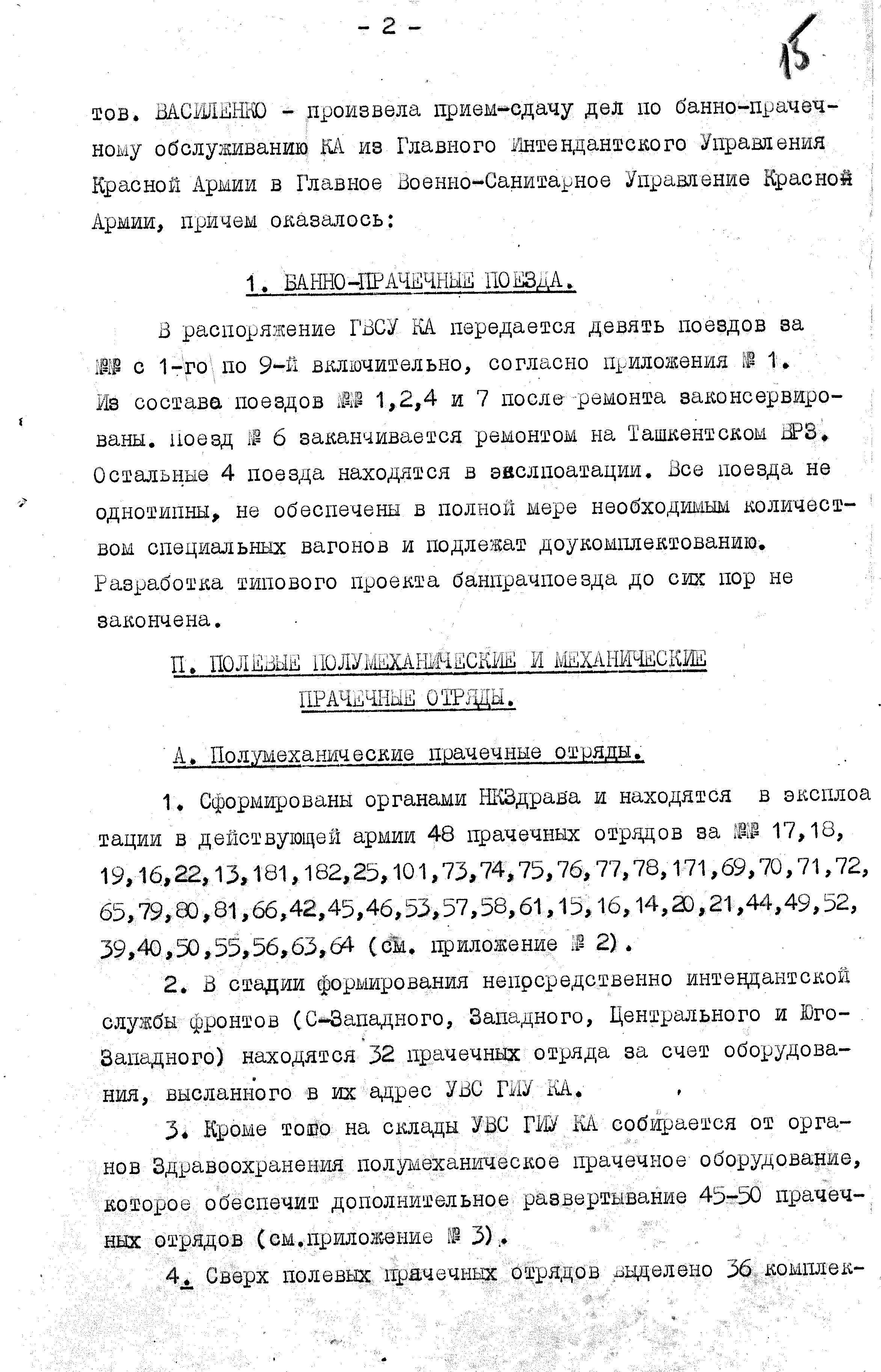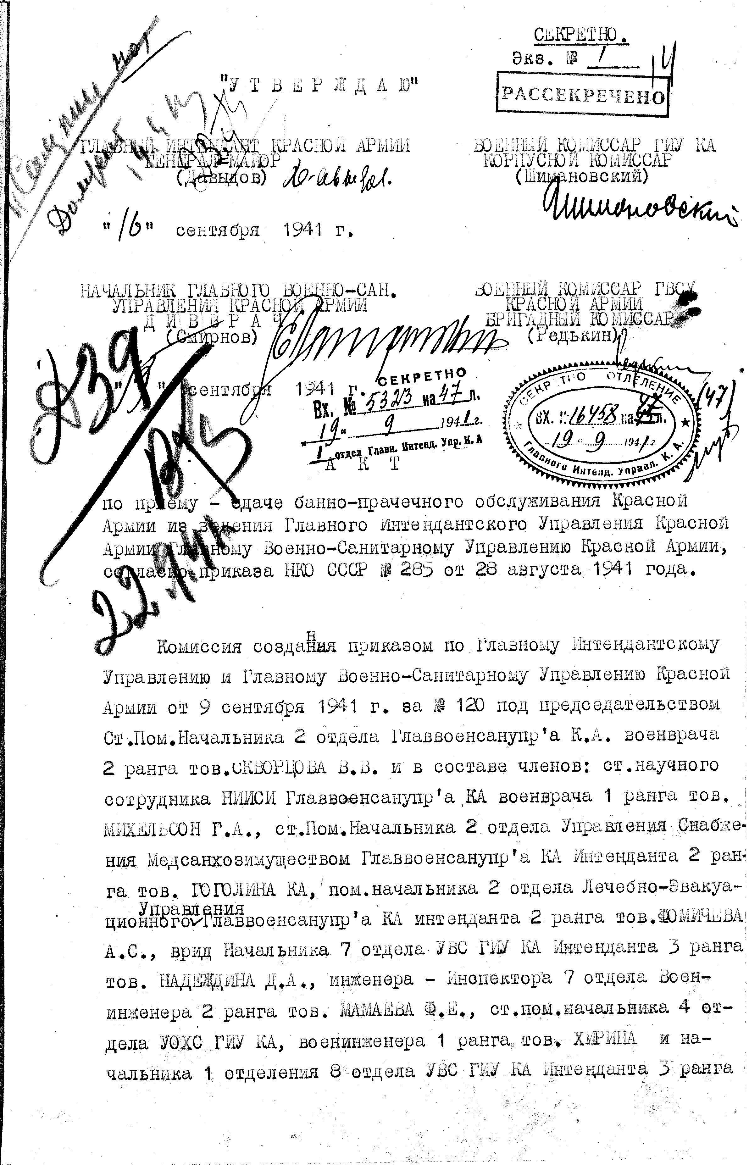 Собственно обо всём этом, и даже отчасти более подробно, написано в акте приёма-сдачи банно-прачечного обслуживания Красной Армии из ведения ГИнтУ КА в ГВСУ КА: