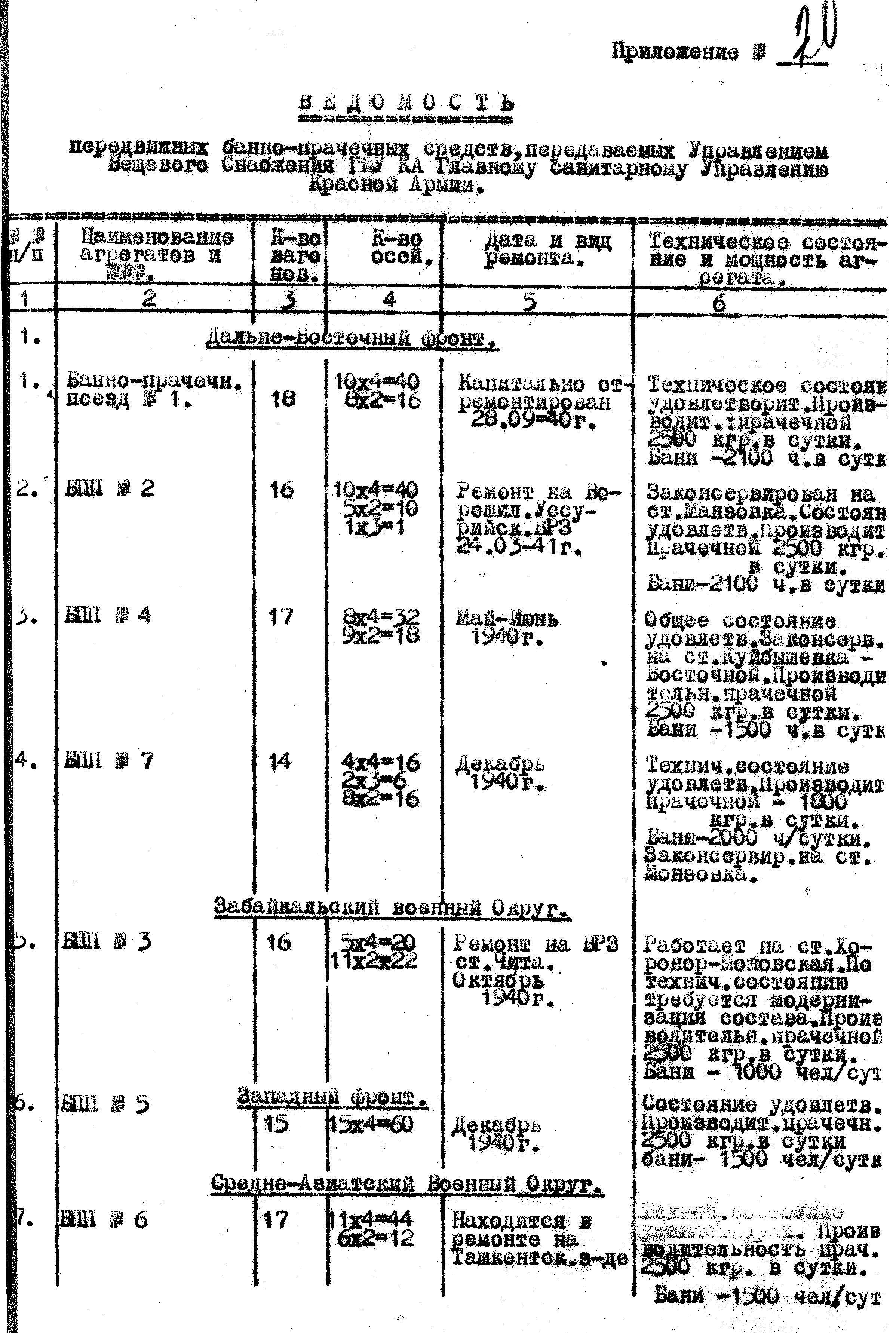 А из этой ведомости, можно увидеть, сколько было банно-прачечных поездов и на каких фронтах они действовали: