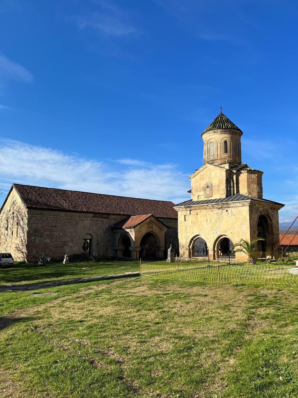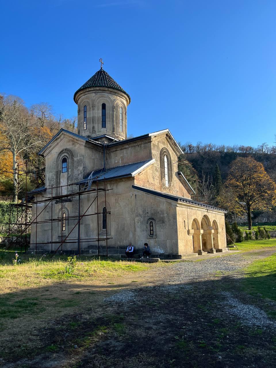 Гелатский монастырь действующий. У него большая территория, на которой построен целый комплекс строений - три храма, Академия, звонница, памятные ворота, также есть захоронения.