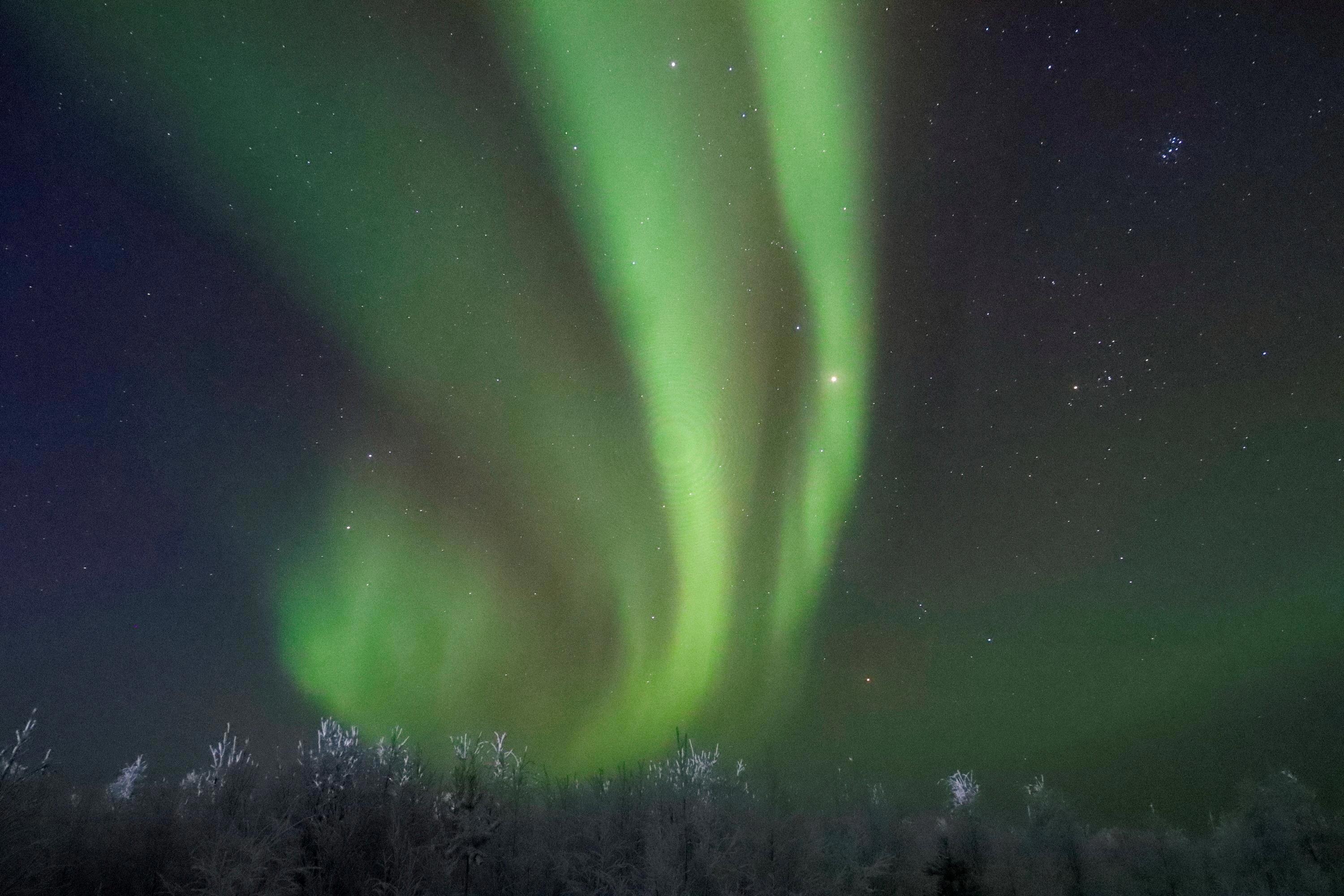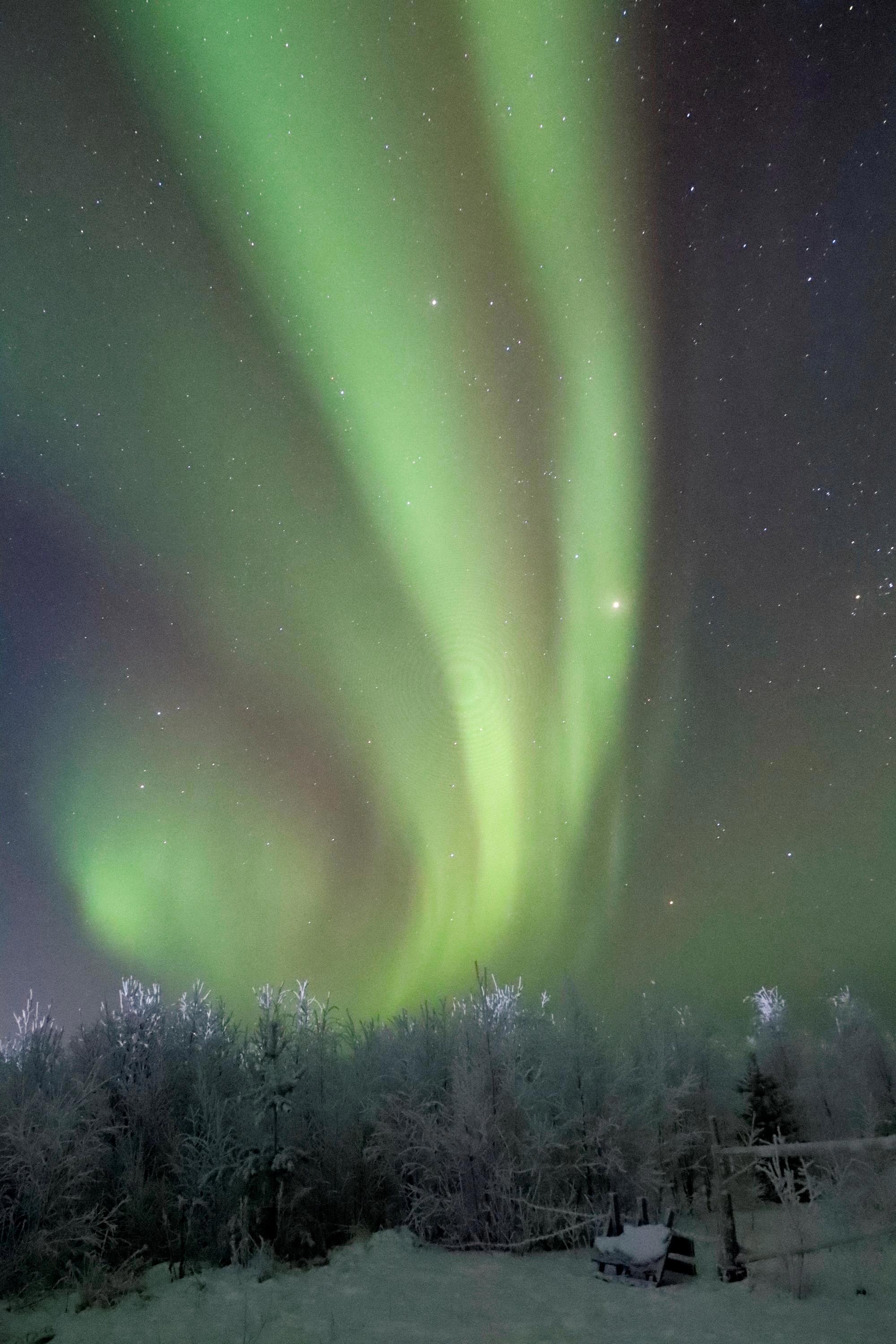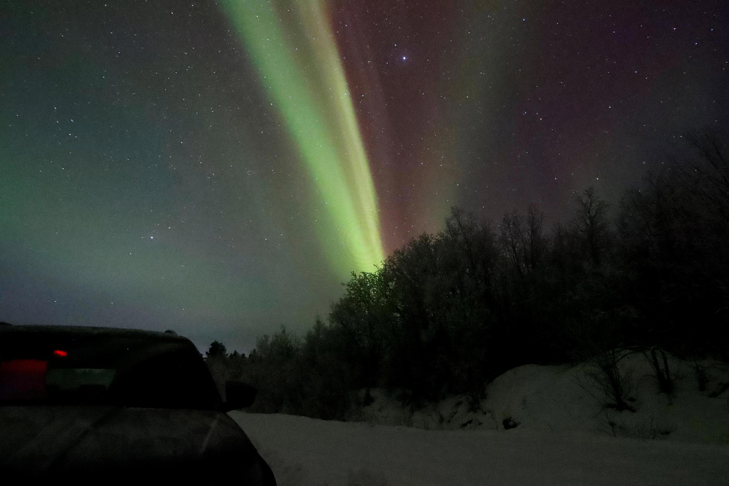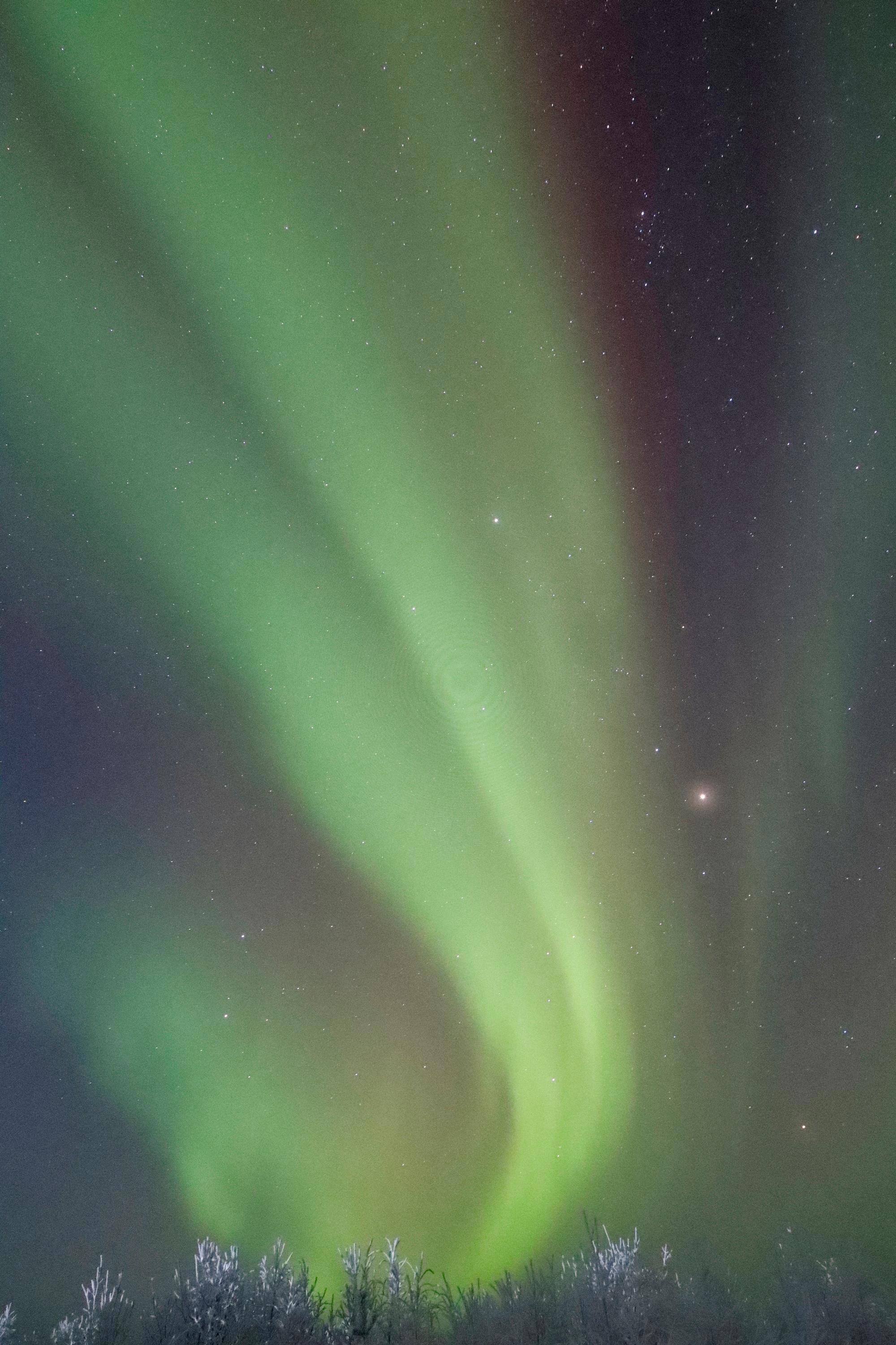 Автор: Хелен ВизардЭто стоило того, чтобы полтора часа померзнуть в темноте при -20С. Именно в темноте, так как выдержка каждого фото не меньше 0,2 секунды. На самом деле - темно, и даже очень. И такой красоты на небе не слишком наблюдается, если просто смотреть, а вот техника фиксирует ее. Редкие проезжавшие мимо машины немного помогали с подсветкой деревьев.