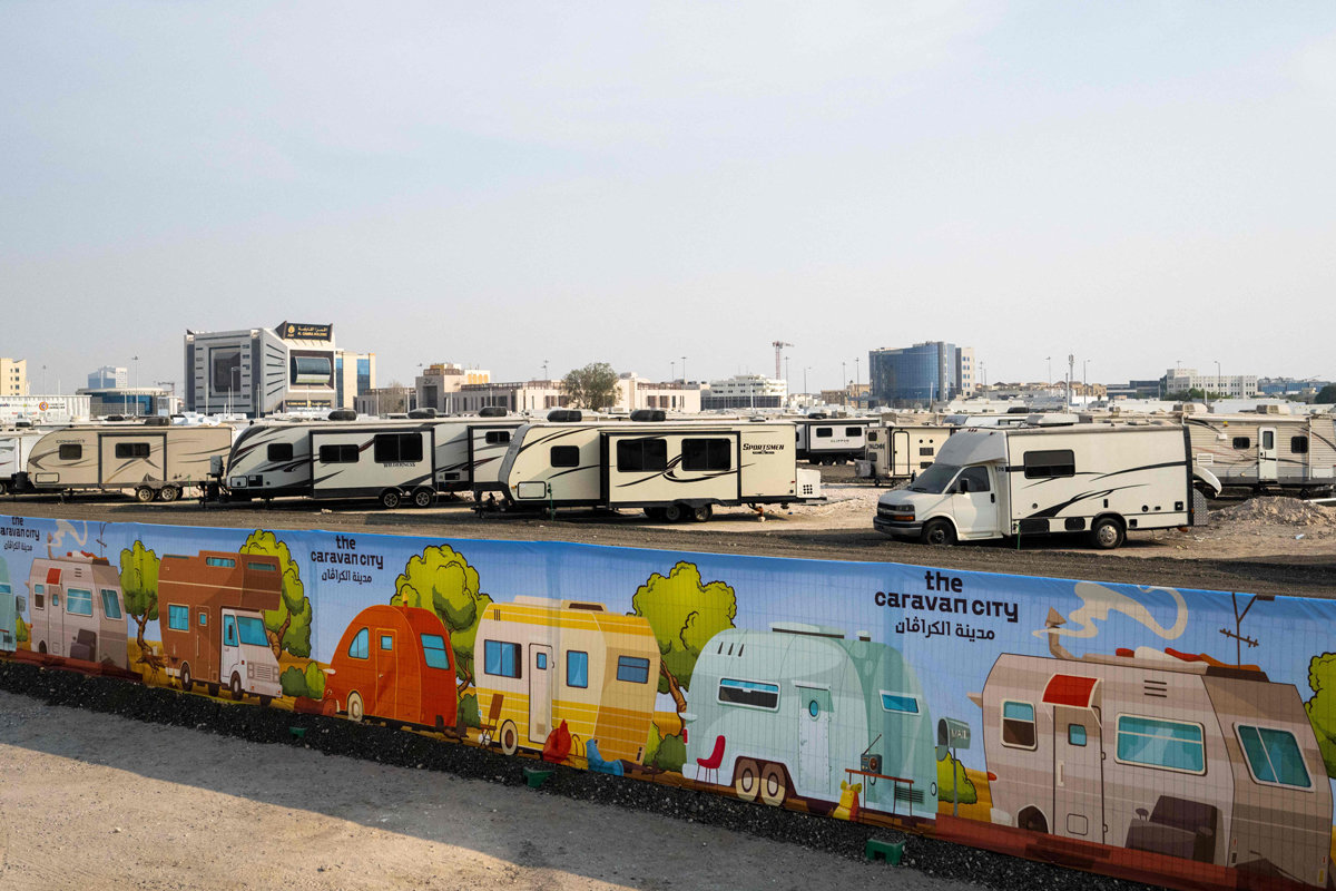 Днем в Катаре даже сейчас - в ноябре + 30 градусов! За последние несколько месяцев в стране не было ни одного дождя. Всё раскалено до предела. Так что дикарём в палатках на окраине не проживёшь. Для туристов со скромным бюджетом предусмотрены подходящие варианты жилья - вот такие скромные лагеря из трейлеров.