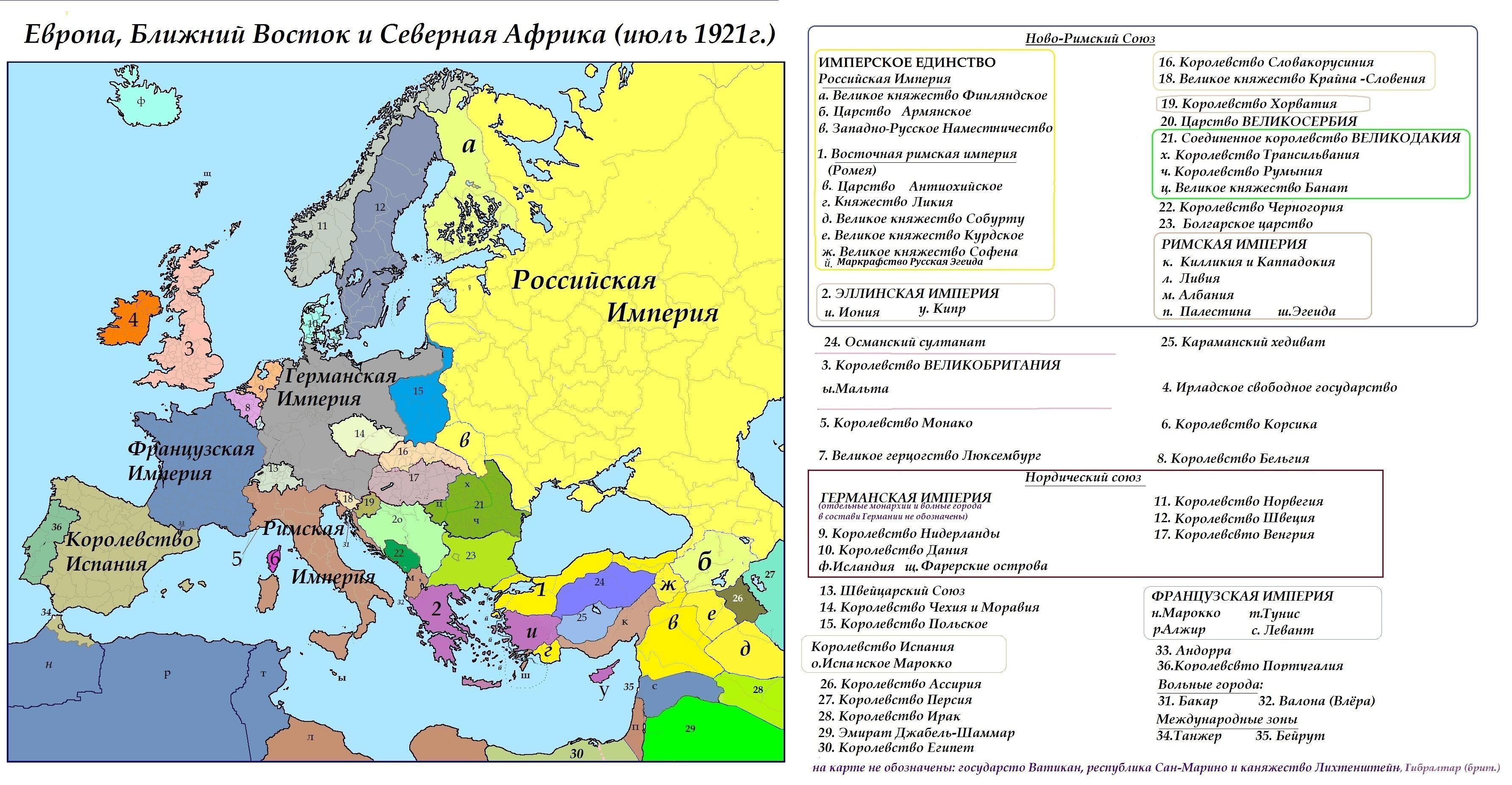 Европа и Средиземноморье на конец июля 1921 года (МНМ)