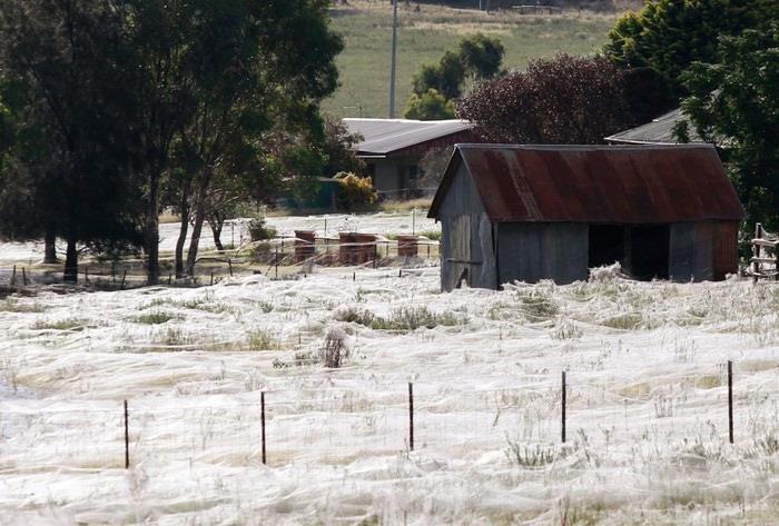 Обычно они появляются после наводнений или проливных дождей, заставляющих пауков забираться на возвышенности. Для многих это зрелище напоминает картины из фильмов фэнтези или ужастиков. Иркутск 2012