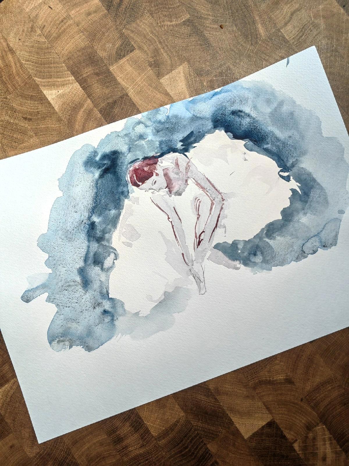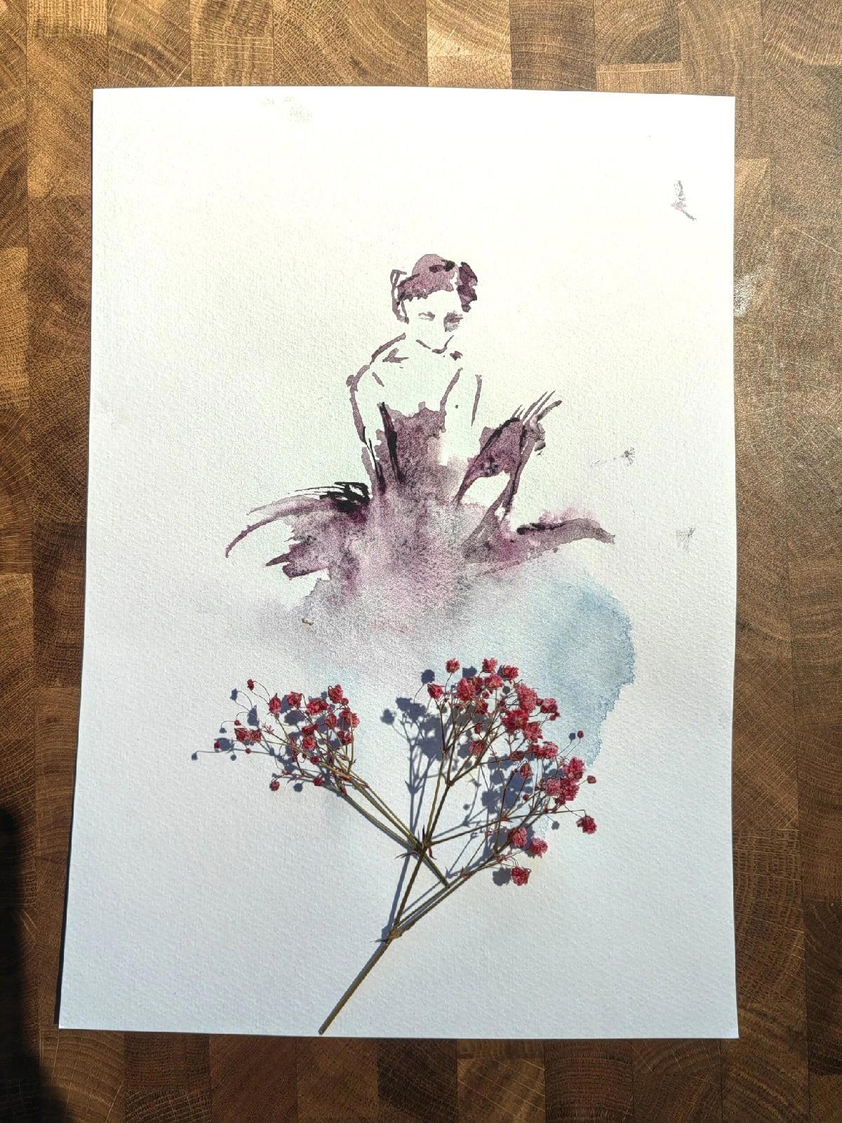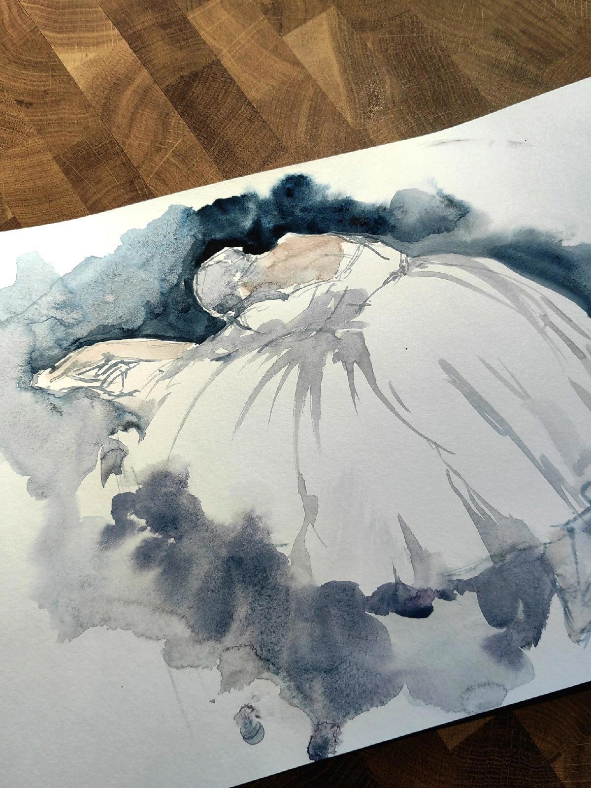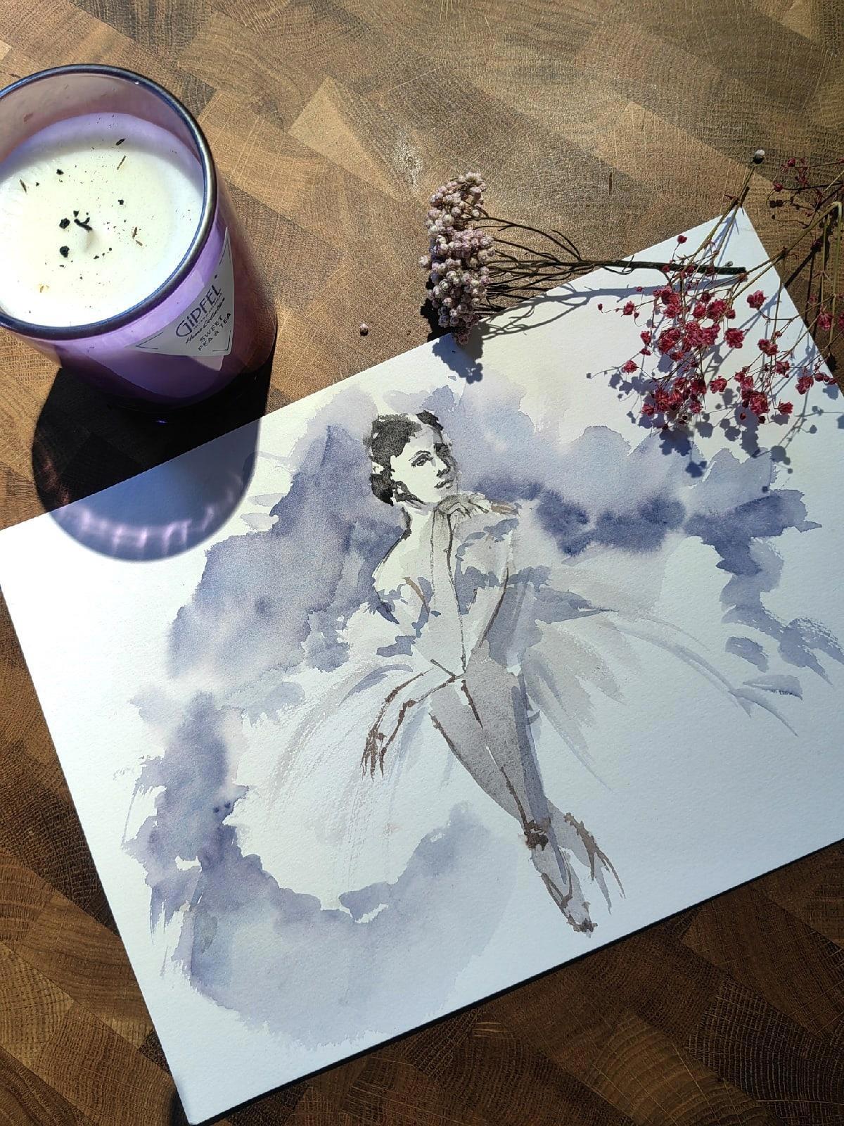 У организатора наших натурных классов есть подруга, занимающаяся балетом в качестве хобби. Она согласилась нам попозировать, за что ей большое спасибо, это было здорово! В следующий раз пригласим на более длительные постановки, 5 минут катастрофически не хватает. Лично я успевала накидать только общие пятна, но удовольствие получила непередаваемое!