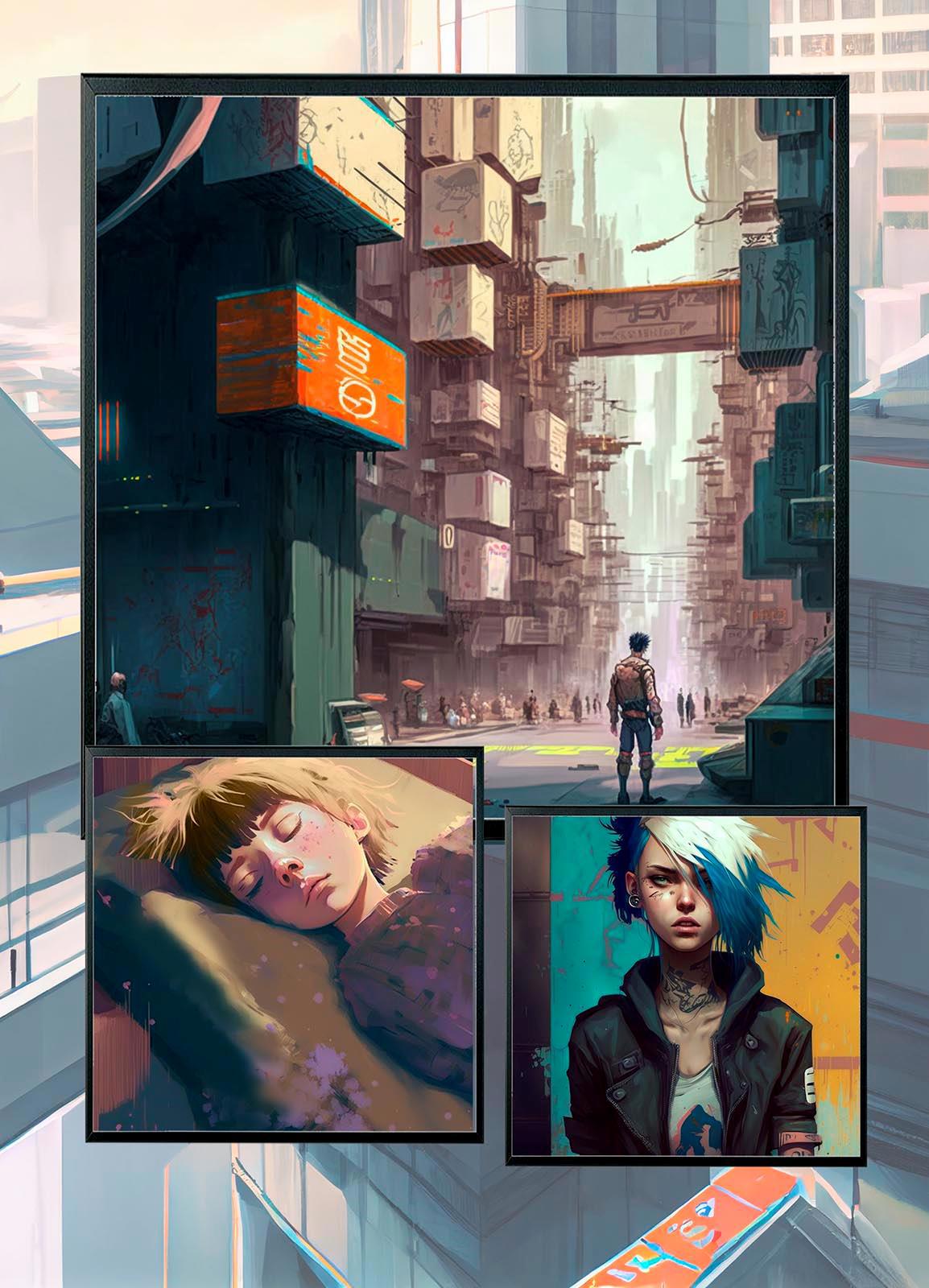 Графический стиль также полукомиксный, потому что в чб-печати «фотореализм» киберпанка, построенный на неоновом свете, просто не был бы виден. Нужна четкая контуровка, которая не пропадет без цвета.