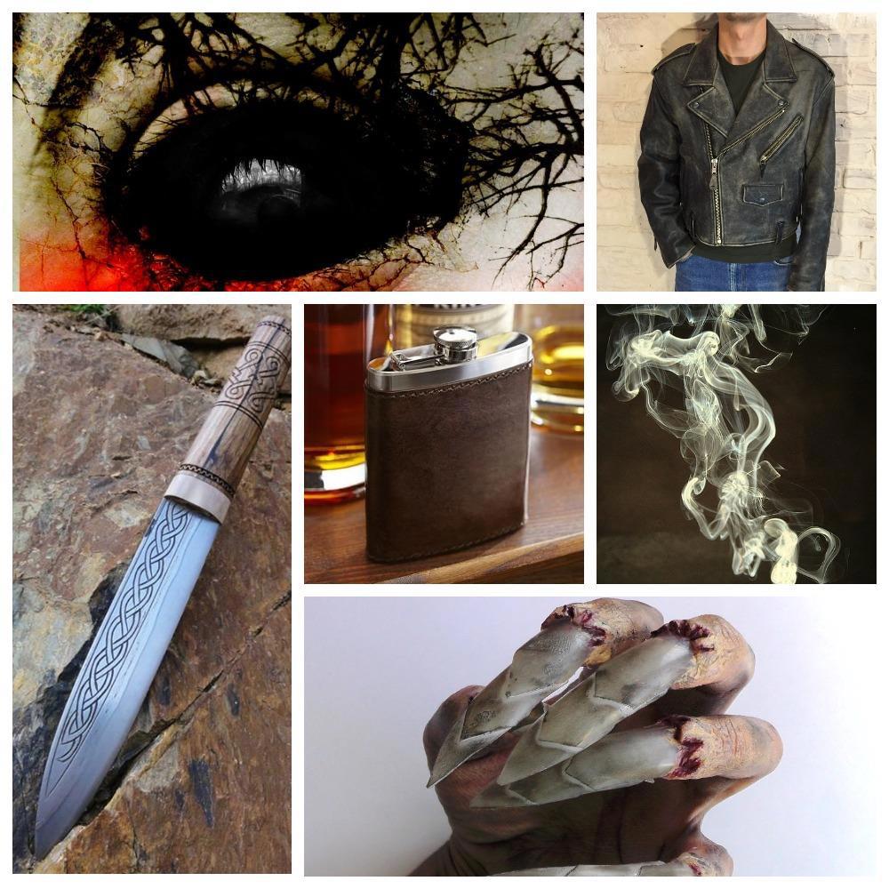 А это - Воин, глава Второго отдела Агентства (он же - отдел силового воздействия), демон-инкуб на службе человечеству. Пьёт, курит, сквернословит, таскает поношенную косуху, личное оружие - кинжал, который может менять размер. Демоническую форму на нашем плане принимает с трудом (а выглядит в ней ужасно и отвратительно), но Тёмным Пламенем управляет и без неё. Чёрный эмпат.
