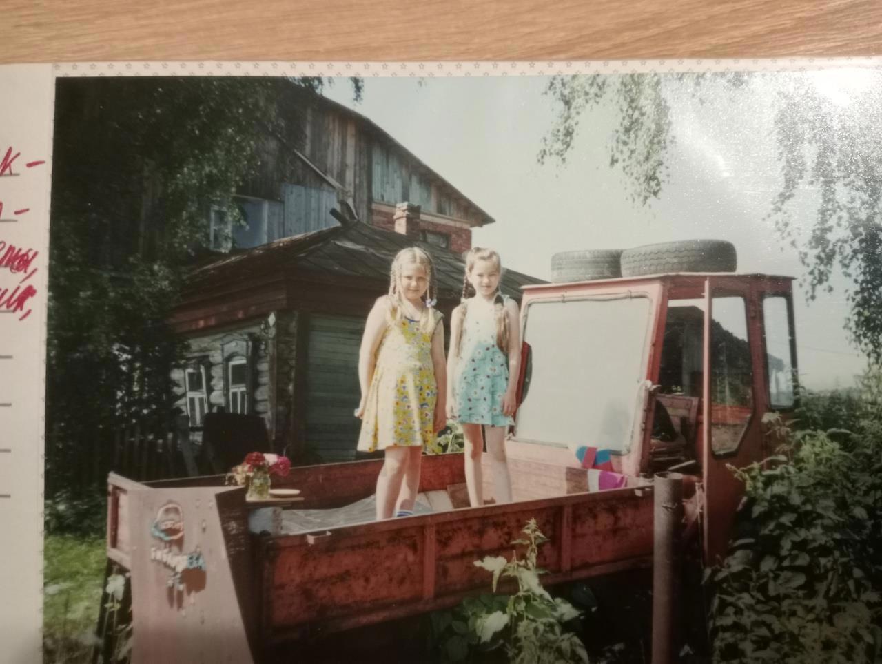 А это тот самый трактор (здесь я с подружкой, и нам 10-11):