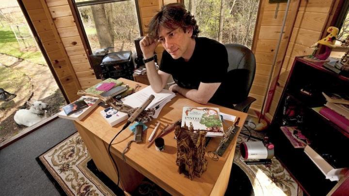 Нил Гейман может похвастаться не просто письменным столом или «кабинетом». Для сочинения книг у него есть специальный писательский домик с панорамным остеклением, расположенный в саду.